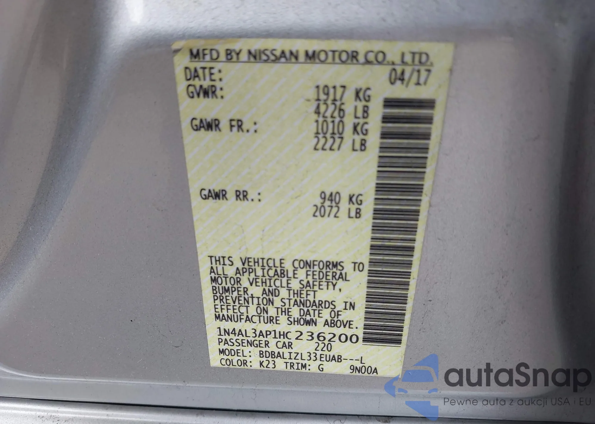 VIN: 1N4AL3AP1HC236200