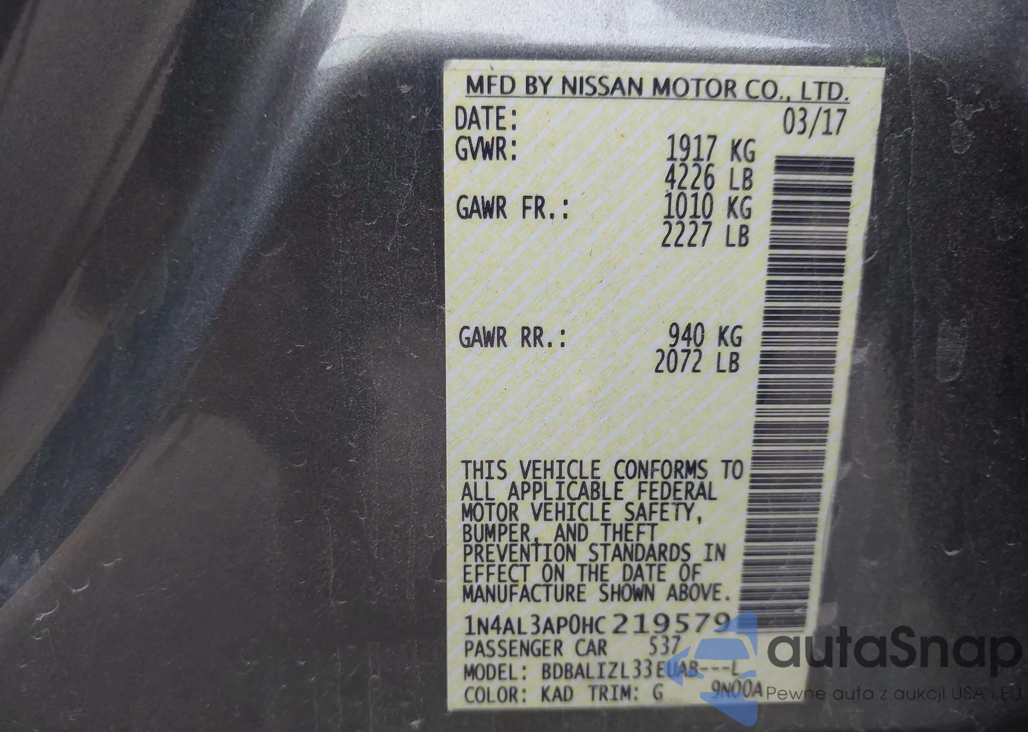VIN: 1N4AL3AP0HC219579