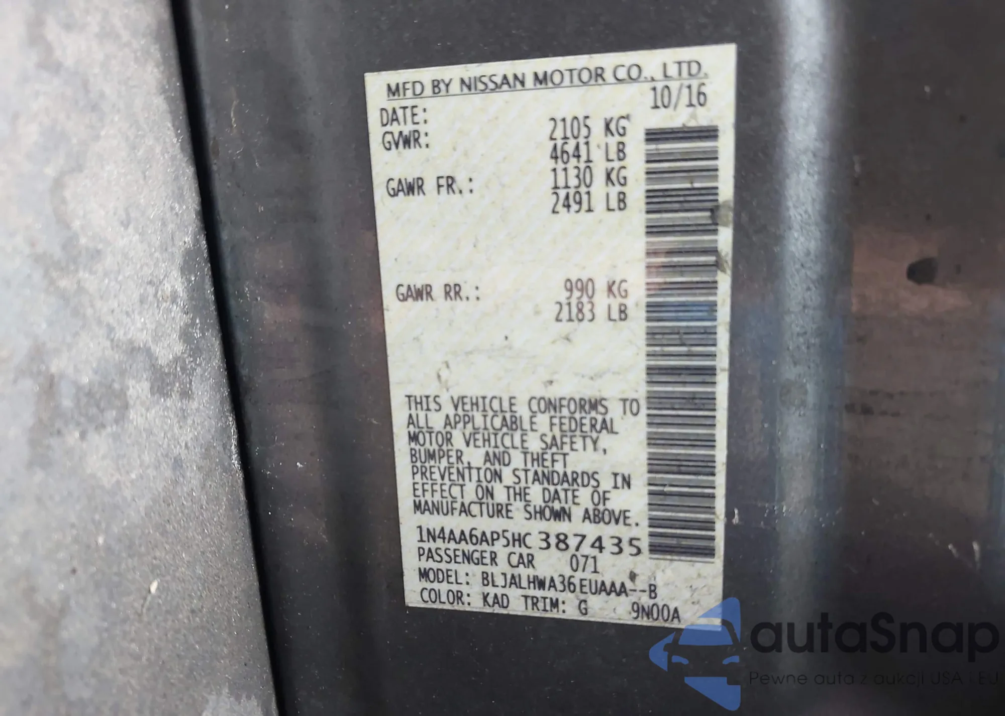VIN: 1N4AA6AP5HC387435