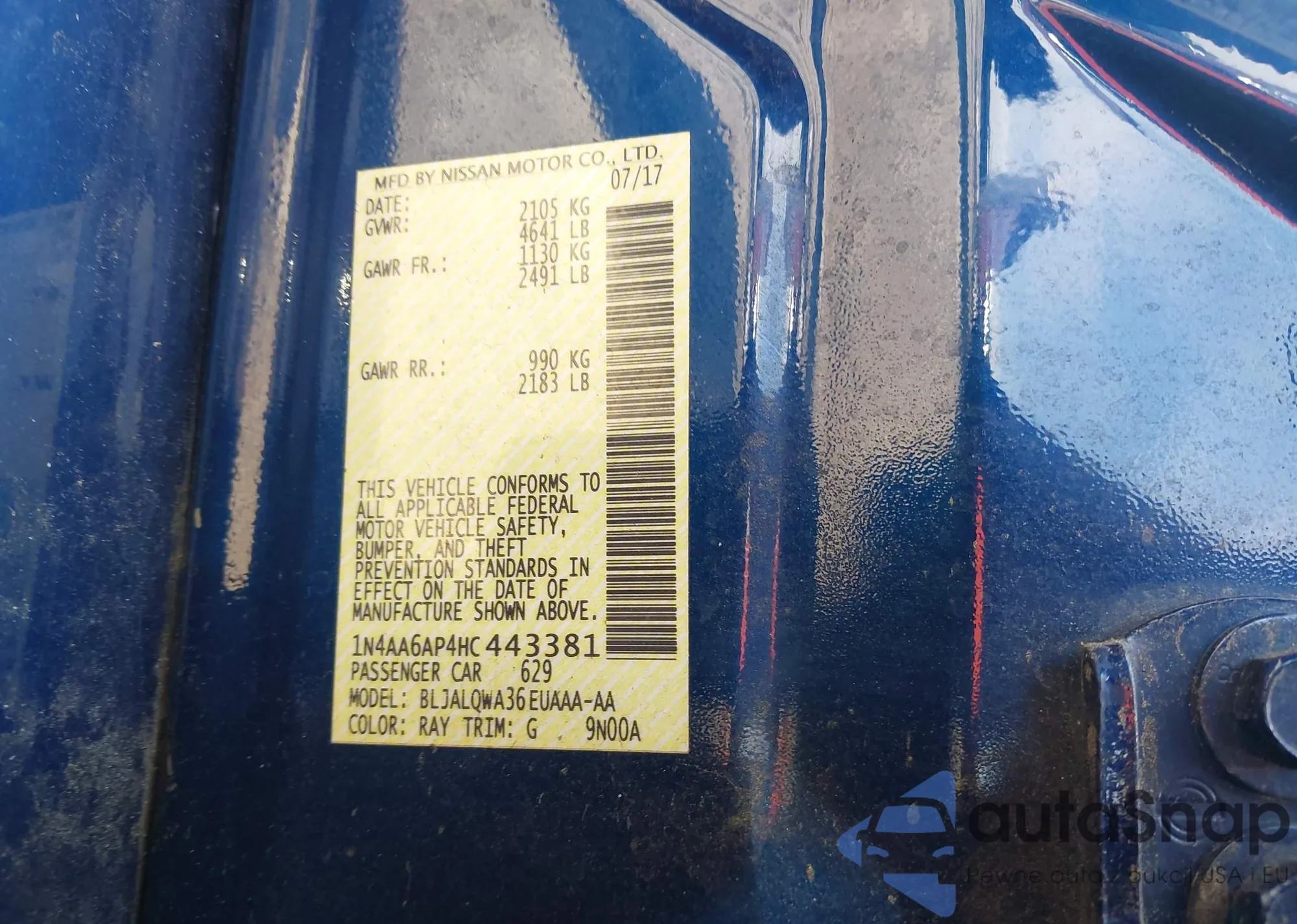 VIN: 1N4AA6AP4HC443381