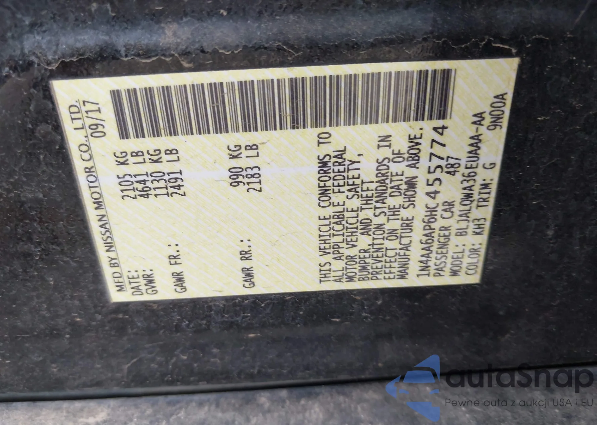 VIN: 1N4AA6AP6HC455774
