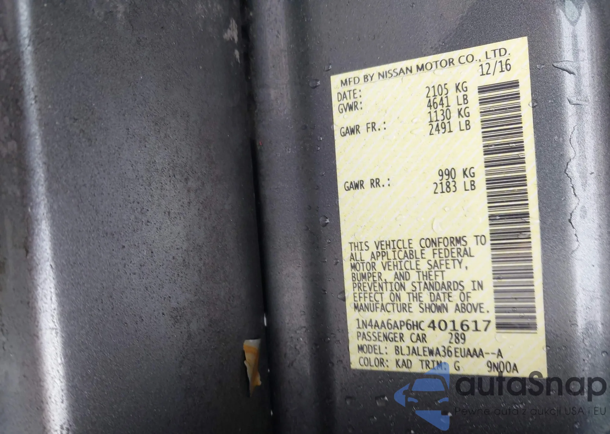 The car Nissan Maxima 2017 (VIN 1N4AA6AP6HC401617) has not been auctioned before. The documents are clean, and the mileage matches or is below the market average. Sold by an insurance company – we recommend purchase. Delivery to the port will take approx. 6–8 weeks.