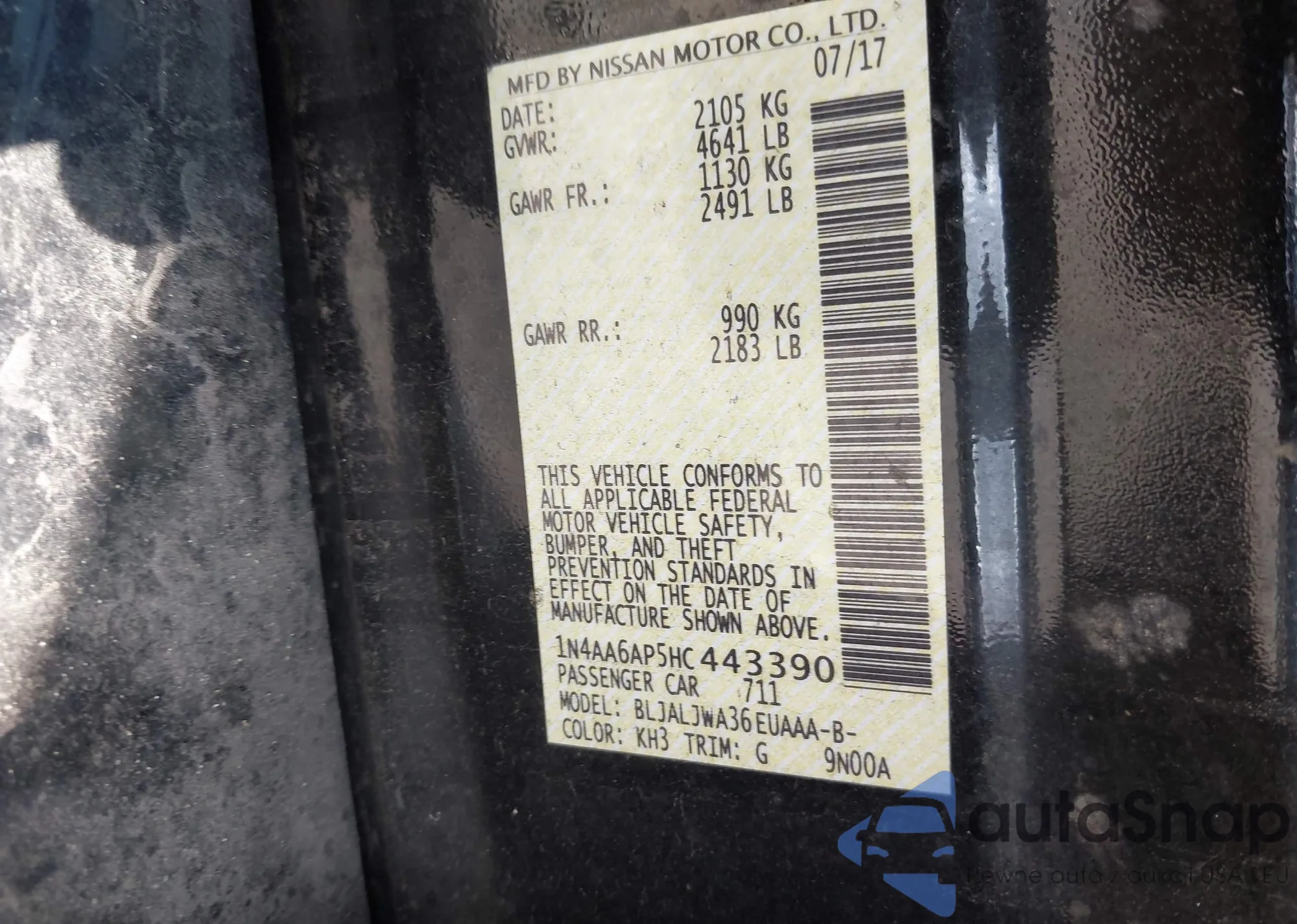 VIN: 1N4AA6AP5HC443390