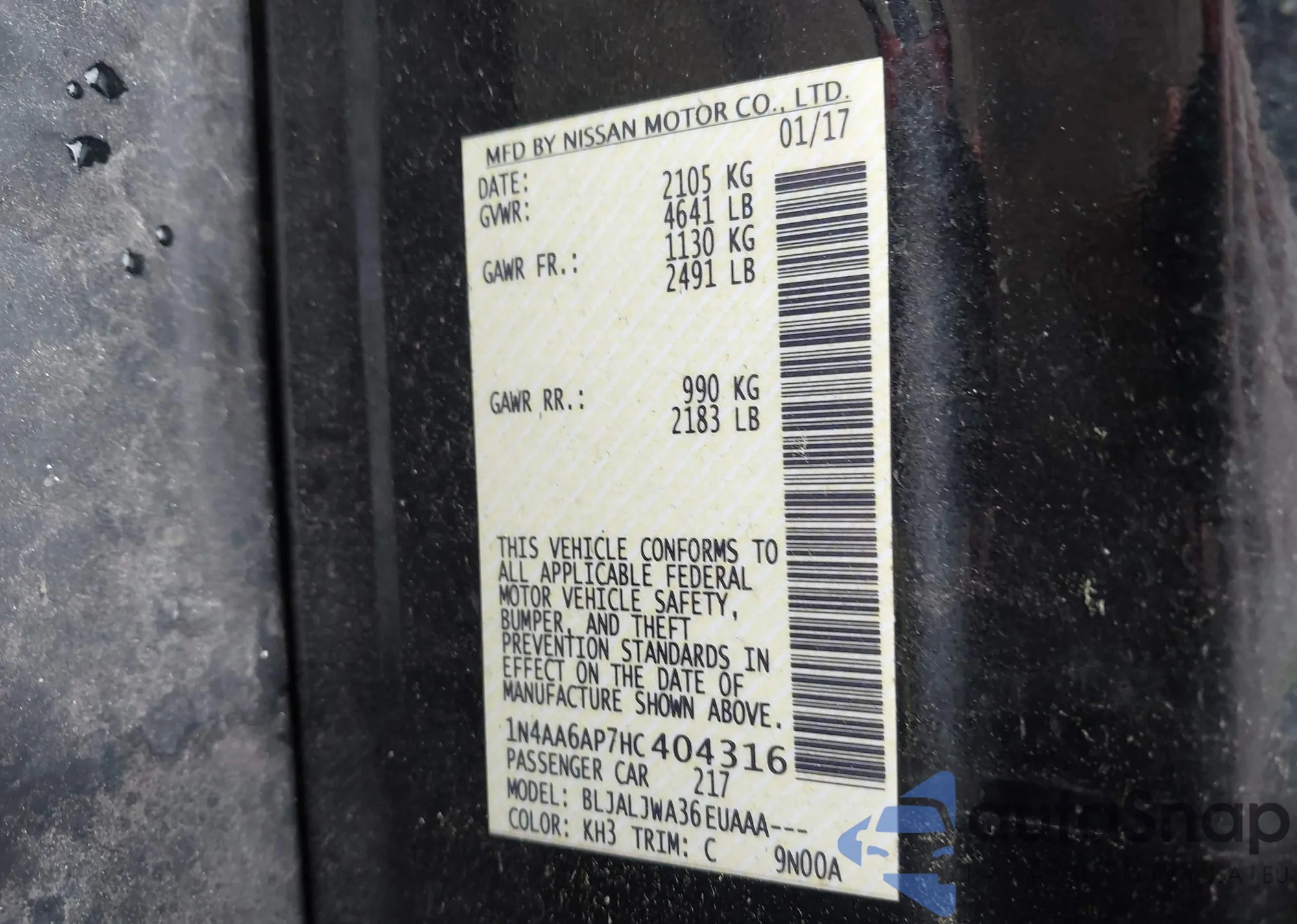 VIN: 1N4AA6AP7HC404316