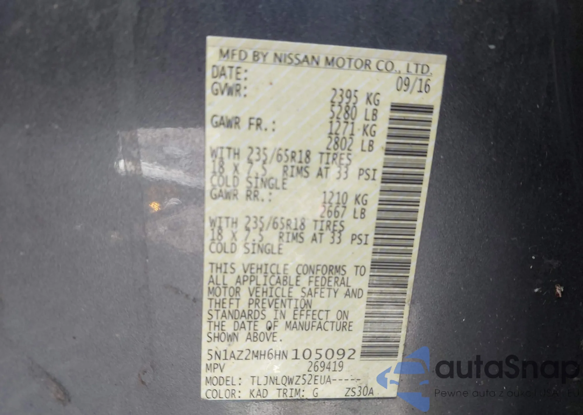 VIN: 5N1AZ2MH6HN105092
