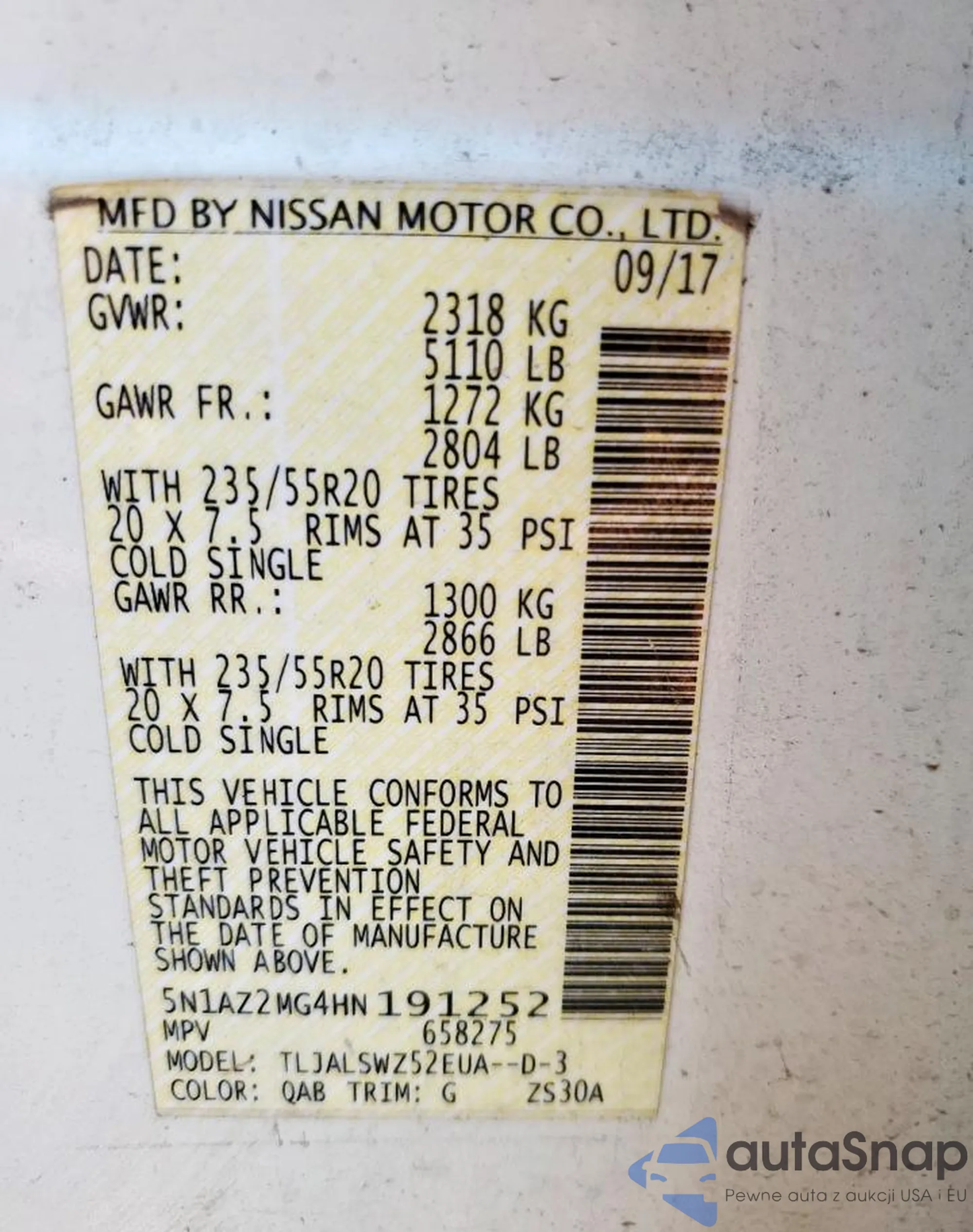 VIN: 5N1AZ2MG4HN191252