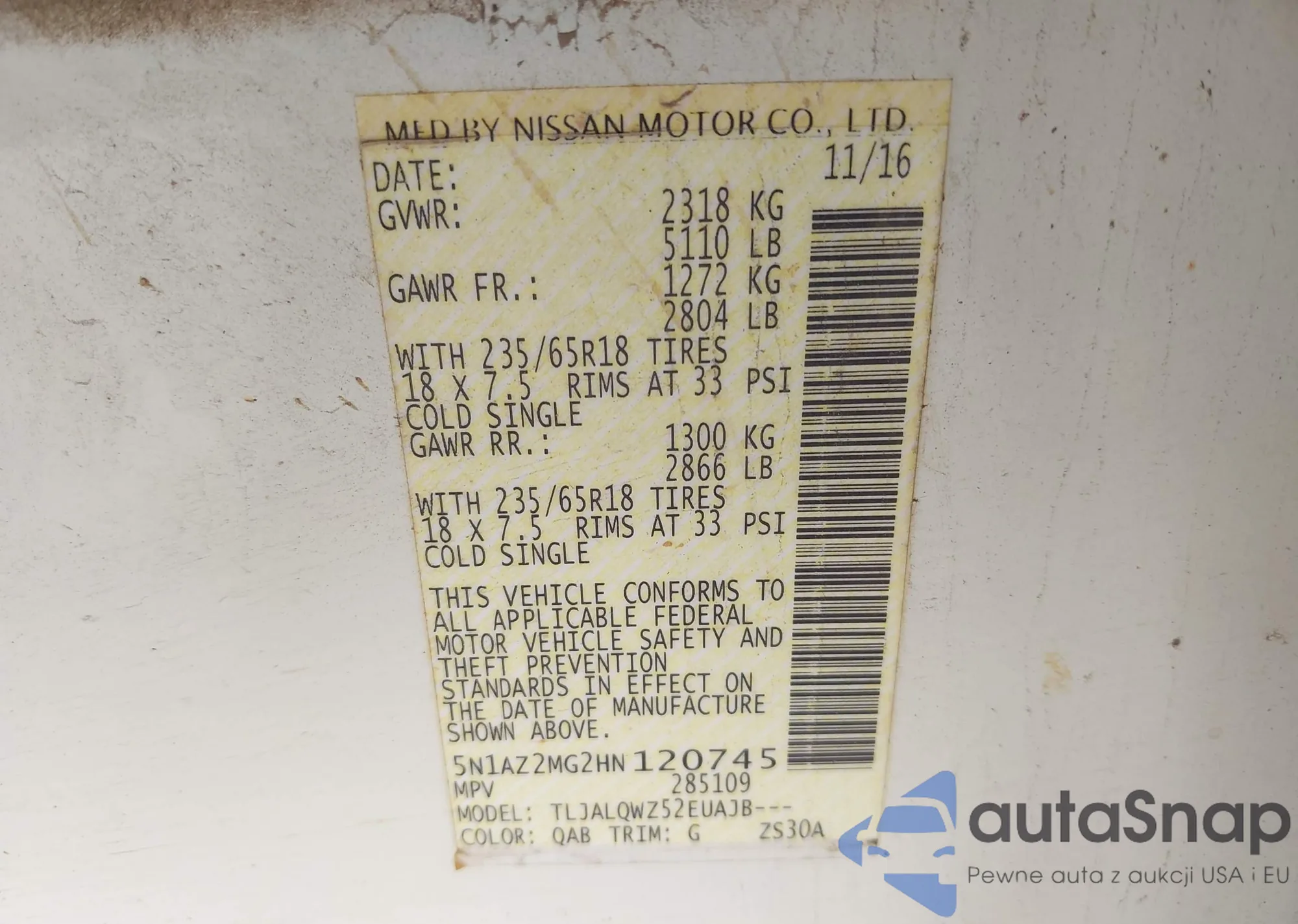 VIN: 5N1AZ2MG2HN120745