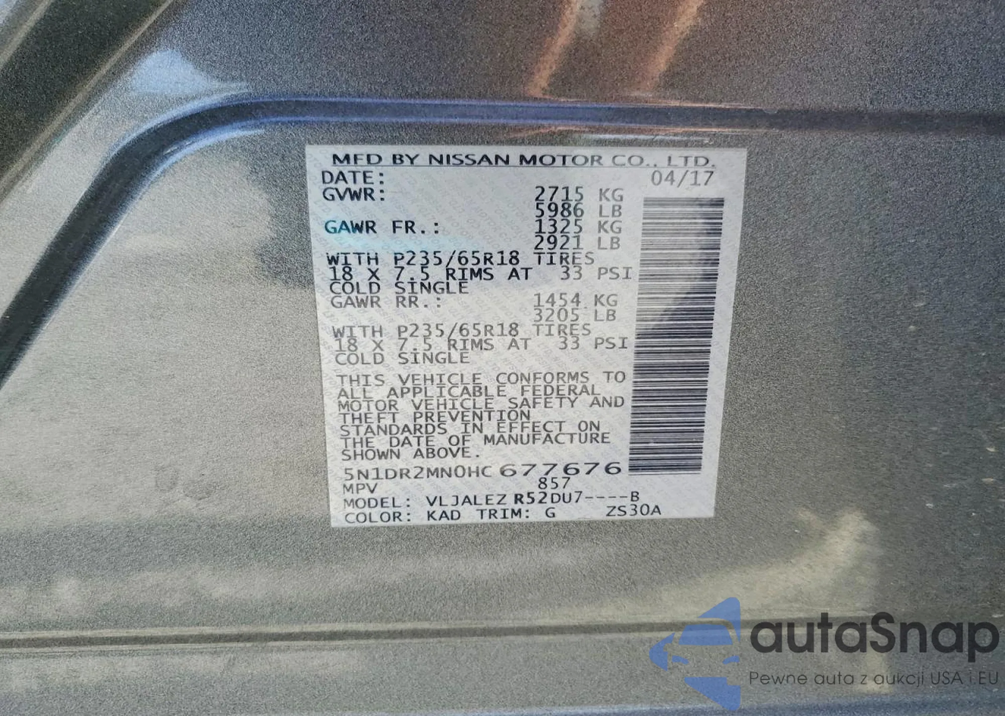 The car Nissan Pathfinder 2017 (VIN 5N1DR2MN0HC677676) is sold by an unverified seller. We recommend checking the Carfax report and confirming registration possibilities before purchase.