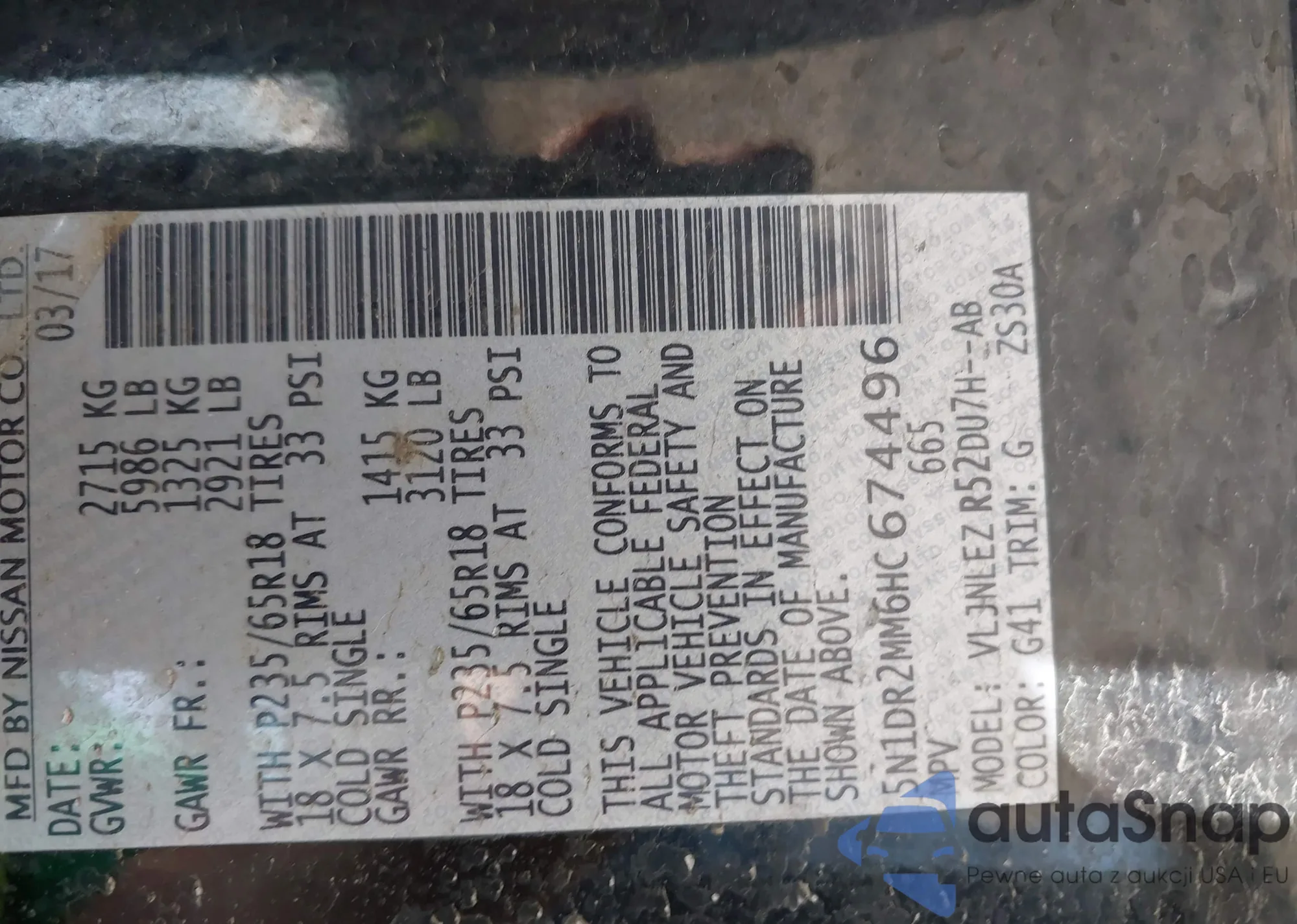 VIN: 5N1DR2MM6HC674496