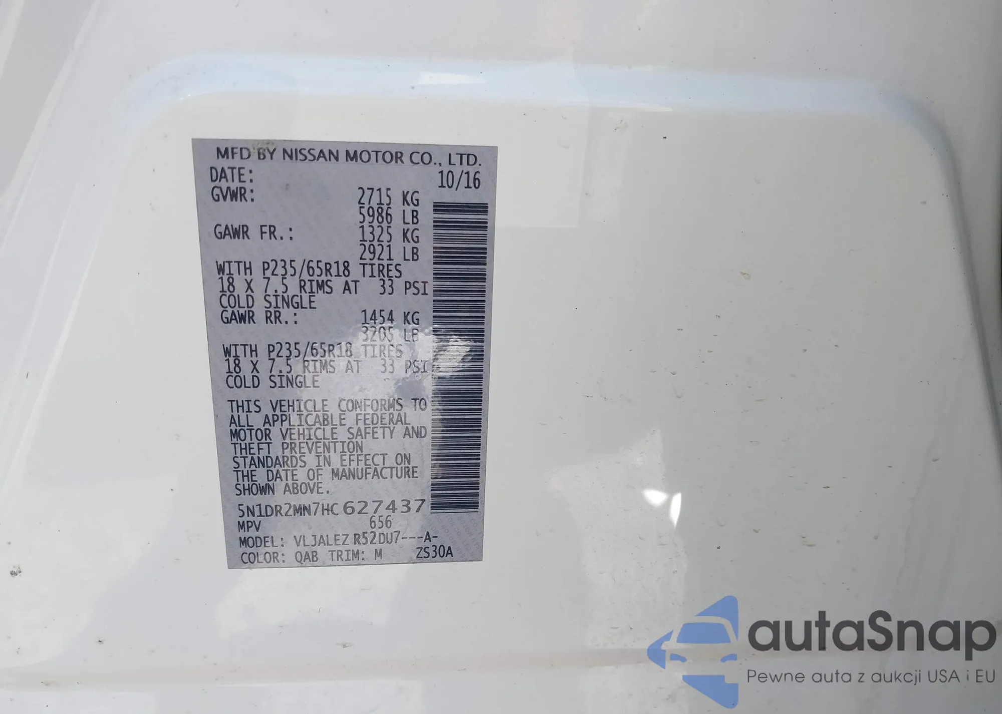 The car Nissan Pathfinder 2017 (VIN 5N1DR2MN7HC627437) has not been auctioned before. The documents are clean, and the mileage matches or is below the market average. Sold by an insurance company – we recommend purchase. Delivery to the port will take approx. 6–8 weeks.