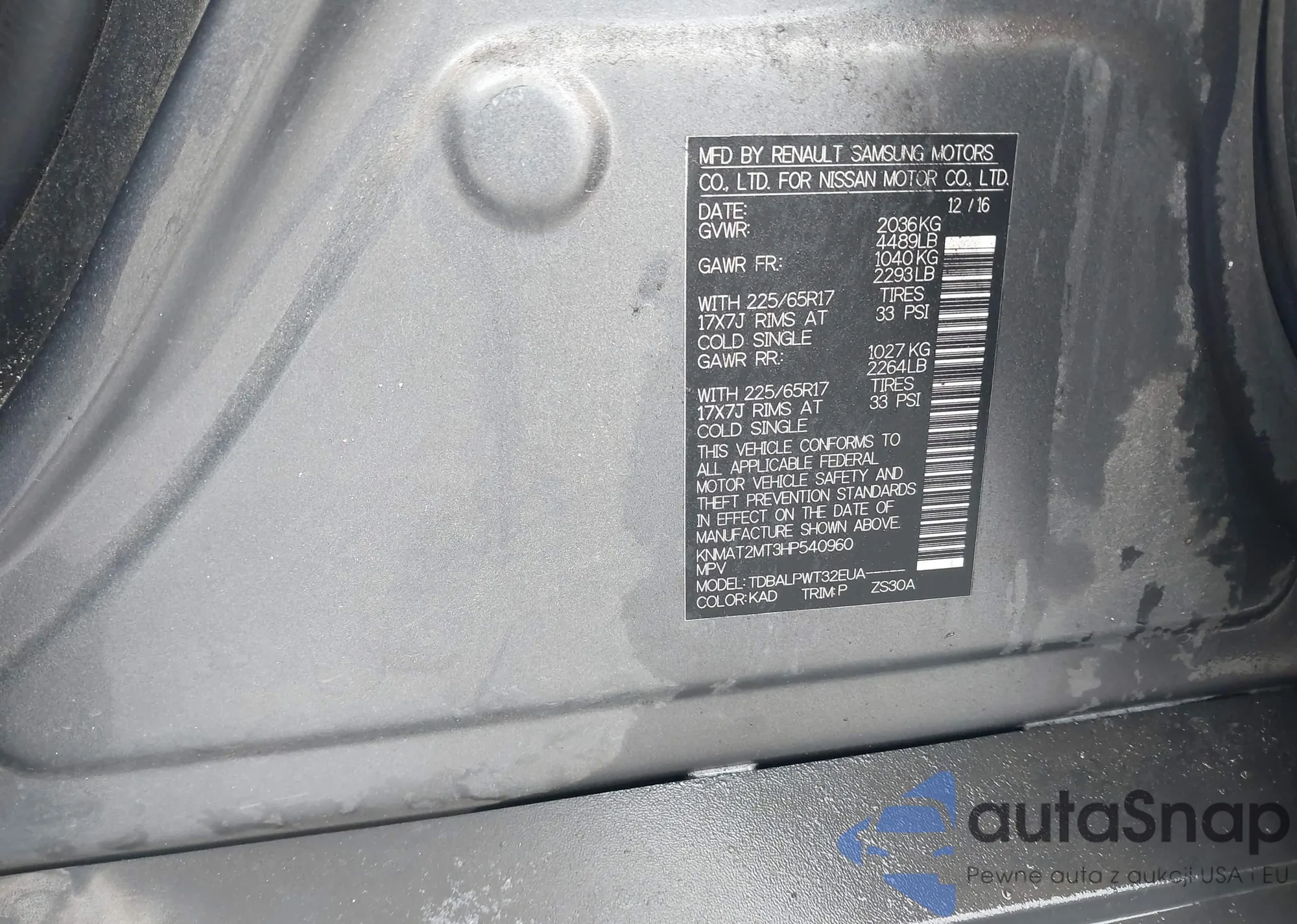 VIN: KNMAT2MT3HP540960