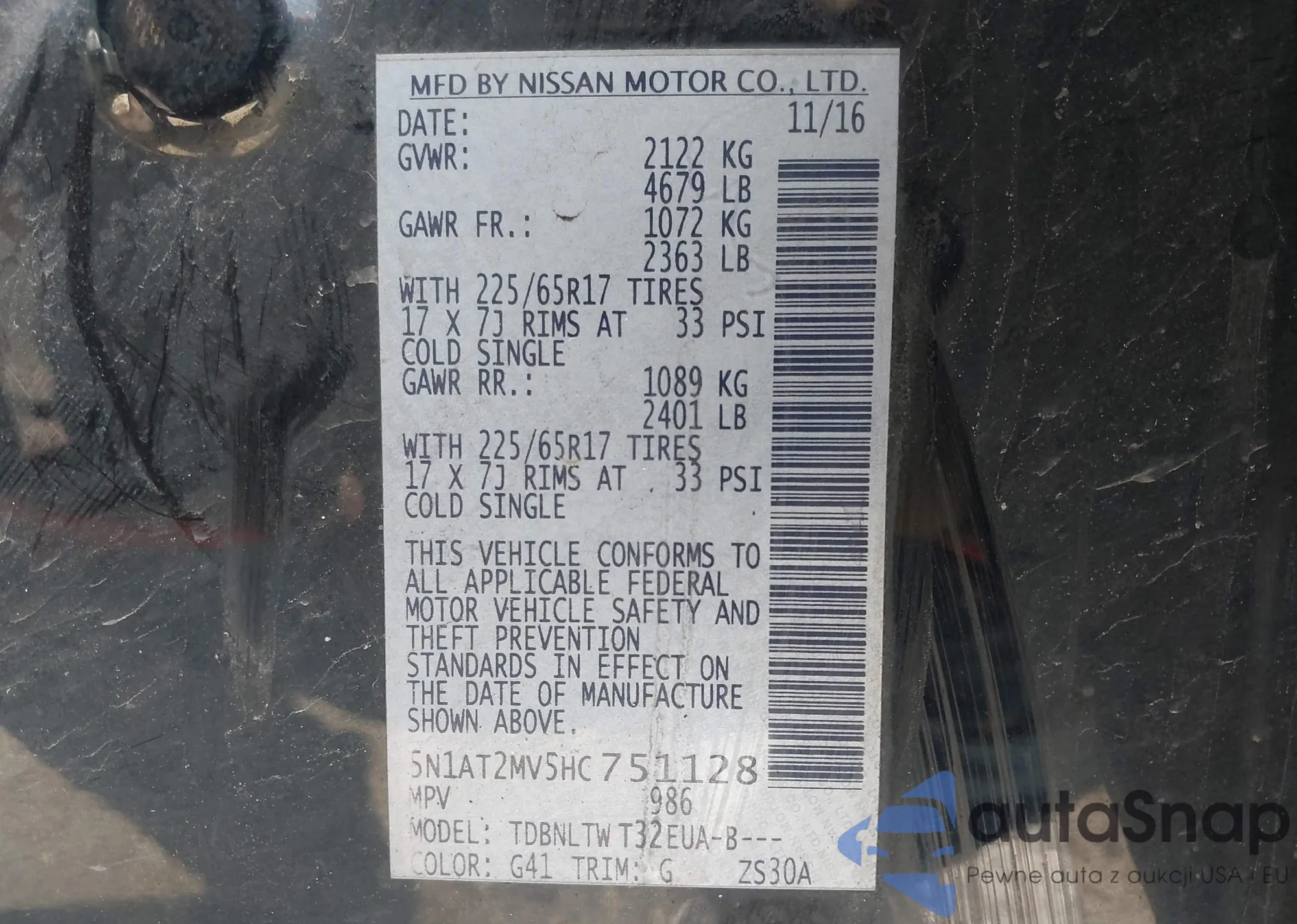 The car Nissan Rogue 2017 (VIN 5N1AT2MV5HC751128) has not been auctioned before. The documents are clean, and the mileage matches or is below the market average. Sold by an insurance company – we recommend purchase. Delivery to the port will take approx. 6–8 weeks.