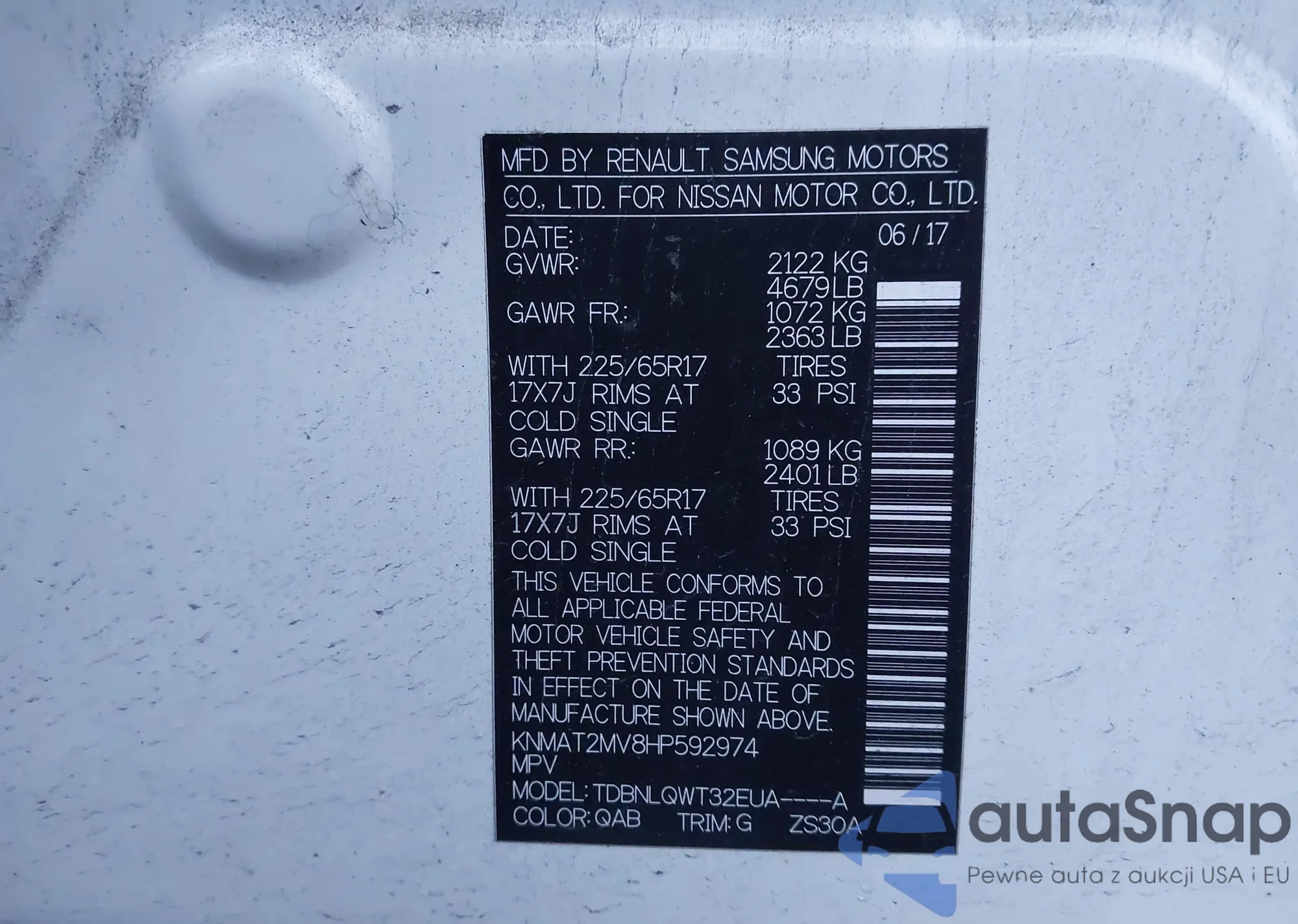 The car Nissan Rogue 2017 (VIN KNMAT2MV8HP592974) has not been auctioned before. The documents are clean, and the mileage matches or is below the market average. Sold by an insurance company – we recommend purchase. Delivery to the port will take approx. 6–8 weeks.