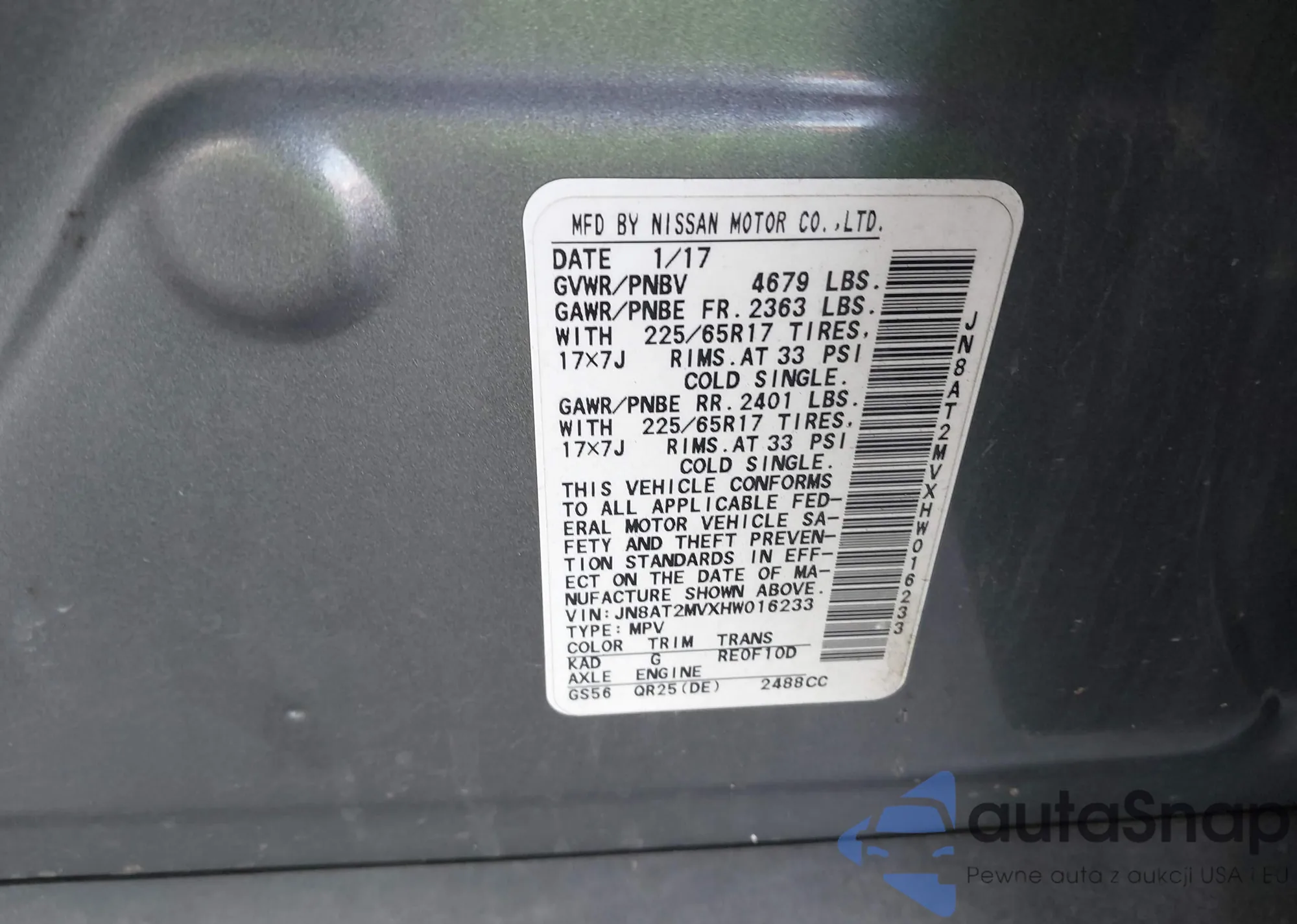 VIN: JN8AT2MVXHW016233