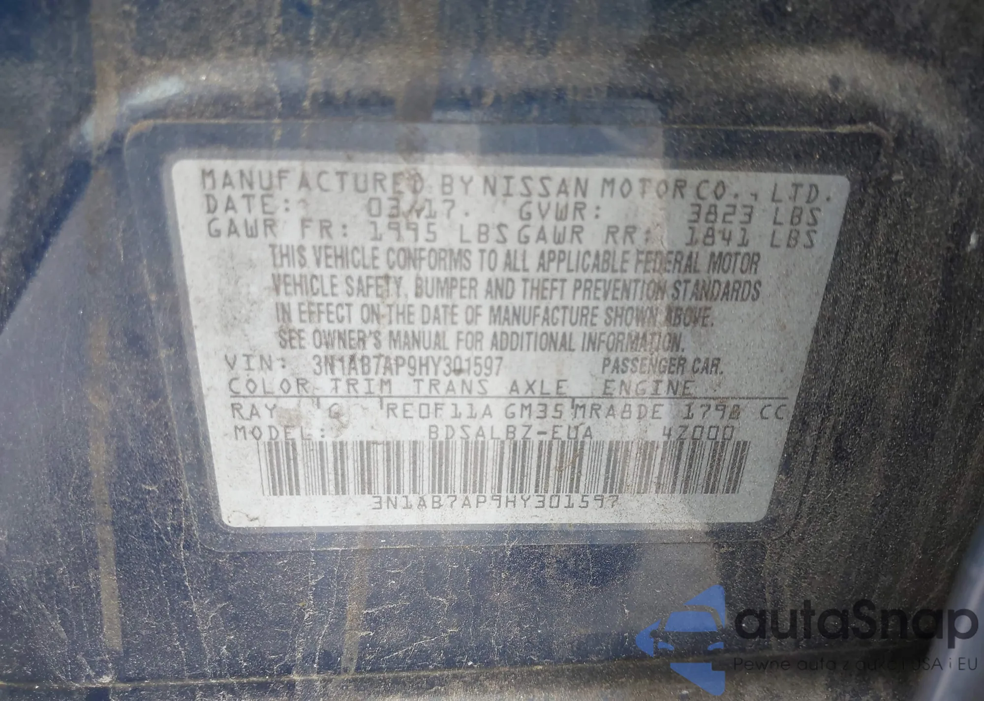 VIN: 3N1AB7AP9HY301597