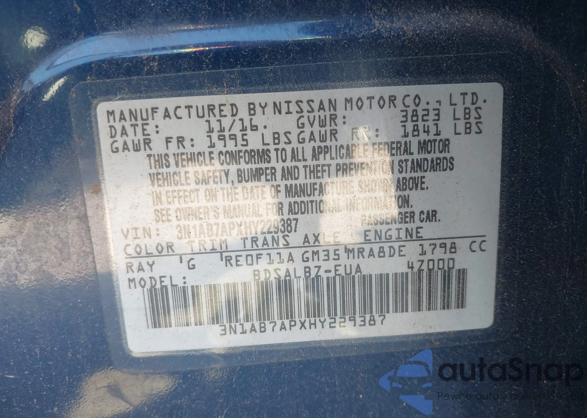 VIN: 3N1AB7APXHY229387