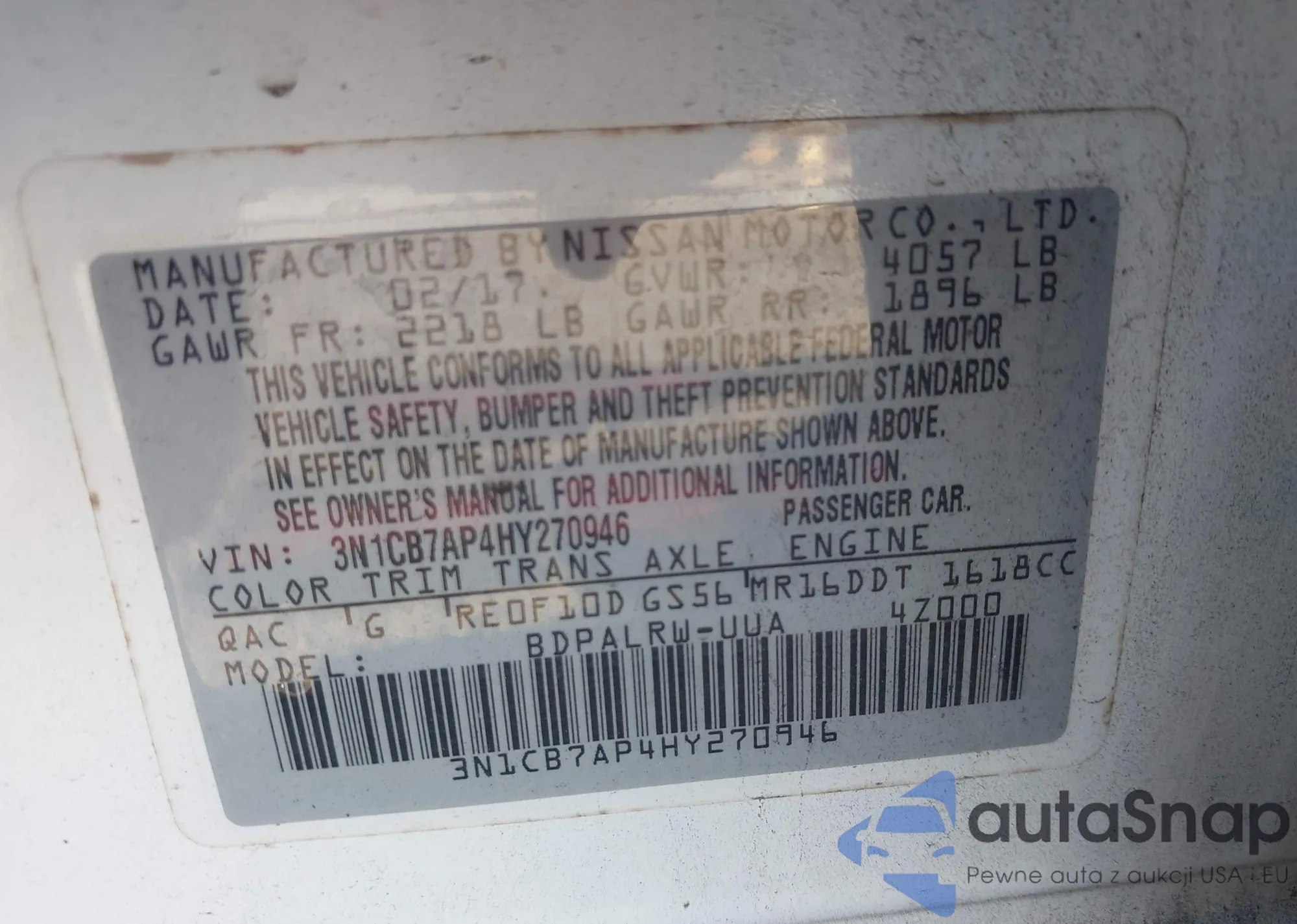 • VIN: 3N1CB7AP4HY270946