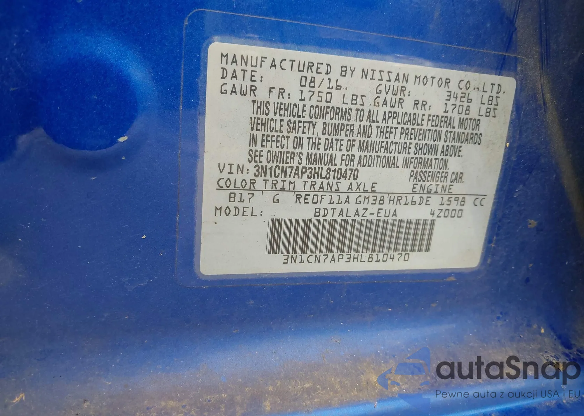 VIN: 3N1CN7AP3HL810470