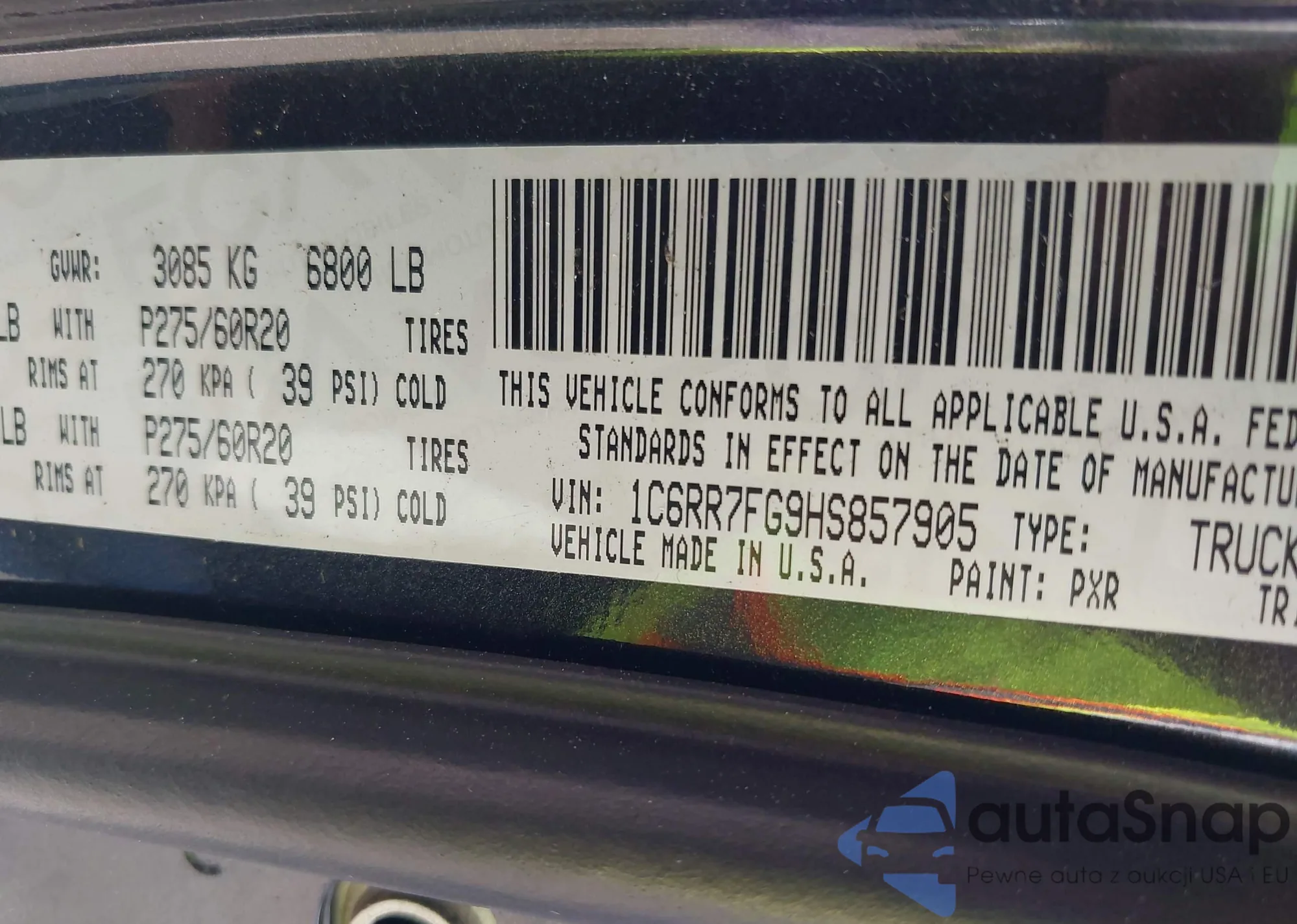 VIN: 1C6RR7FG9HS857905