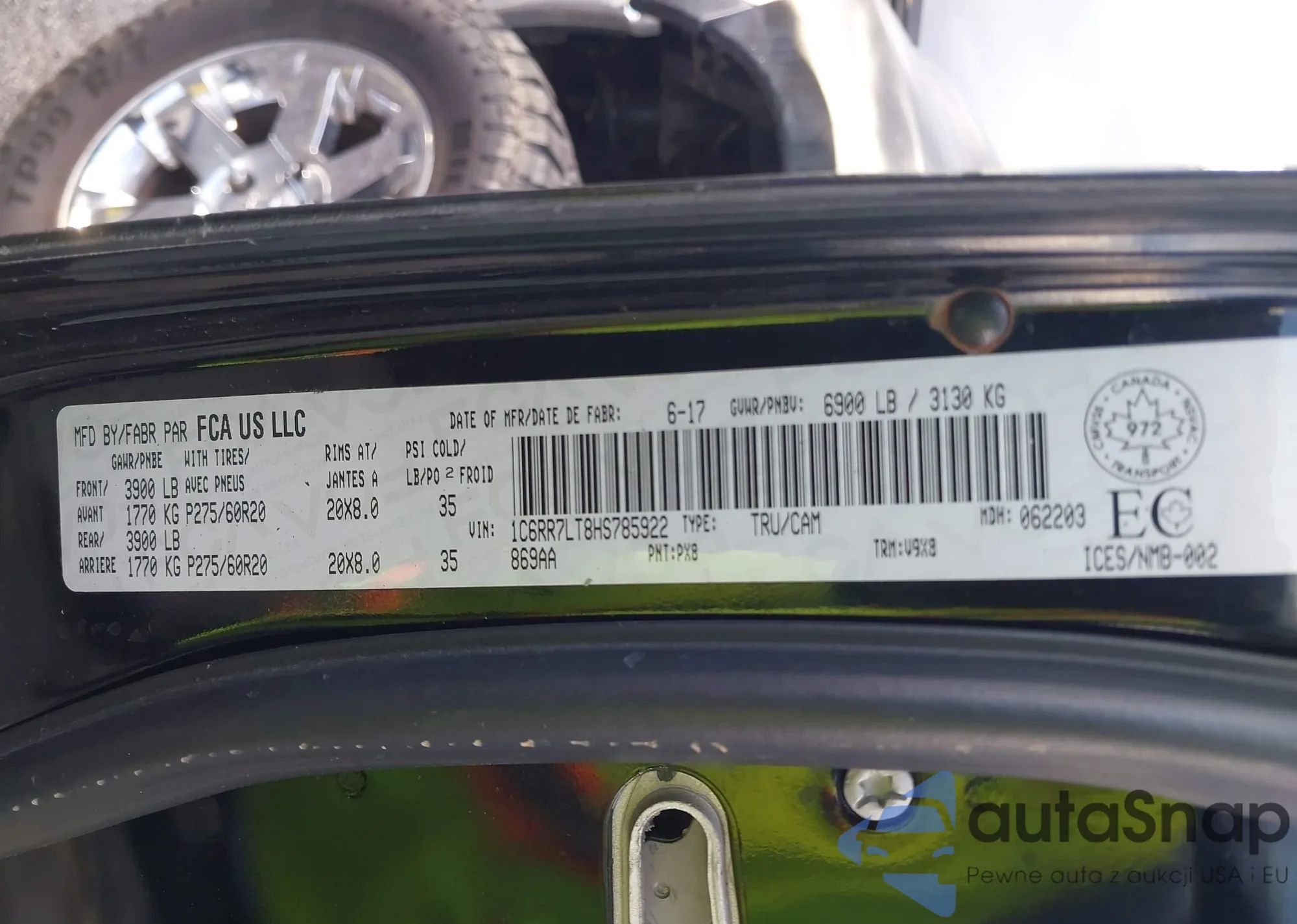 VIN: 1C6RR7LT8HS785922