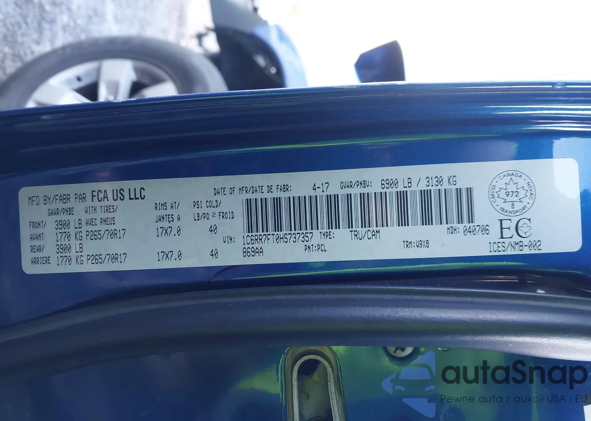 VIN: 1C6RR7FT0HS737357