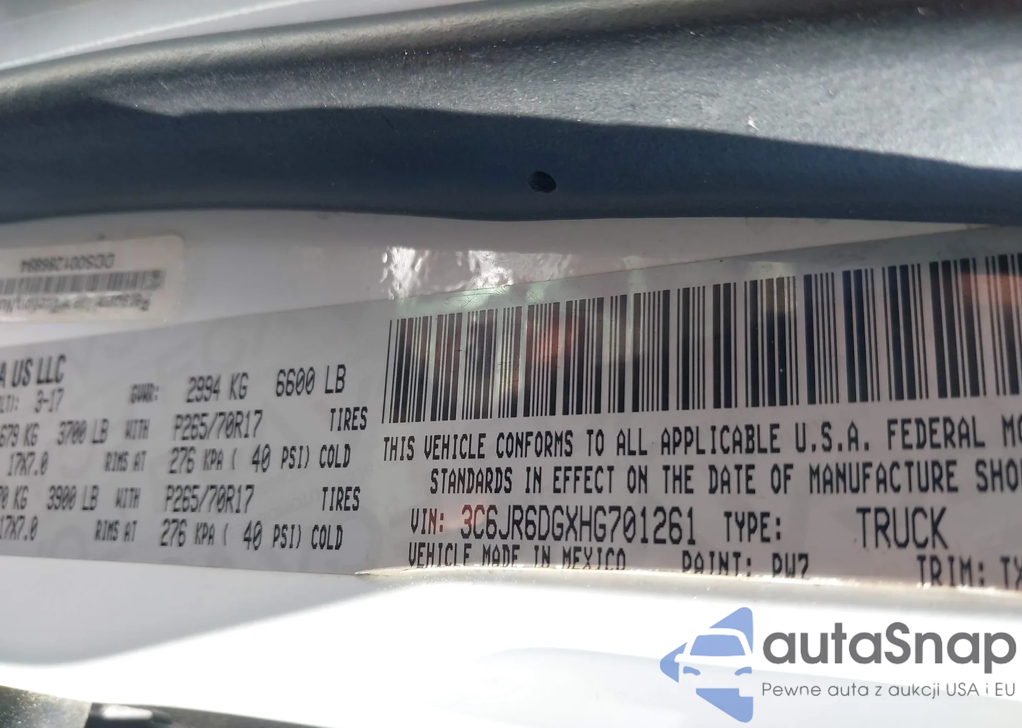 VIN: 3C6JR6DGXHG701261