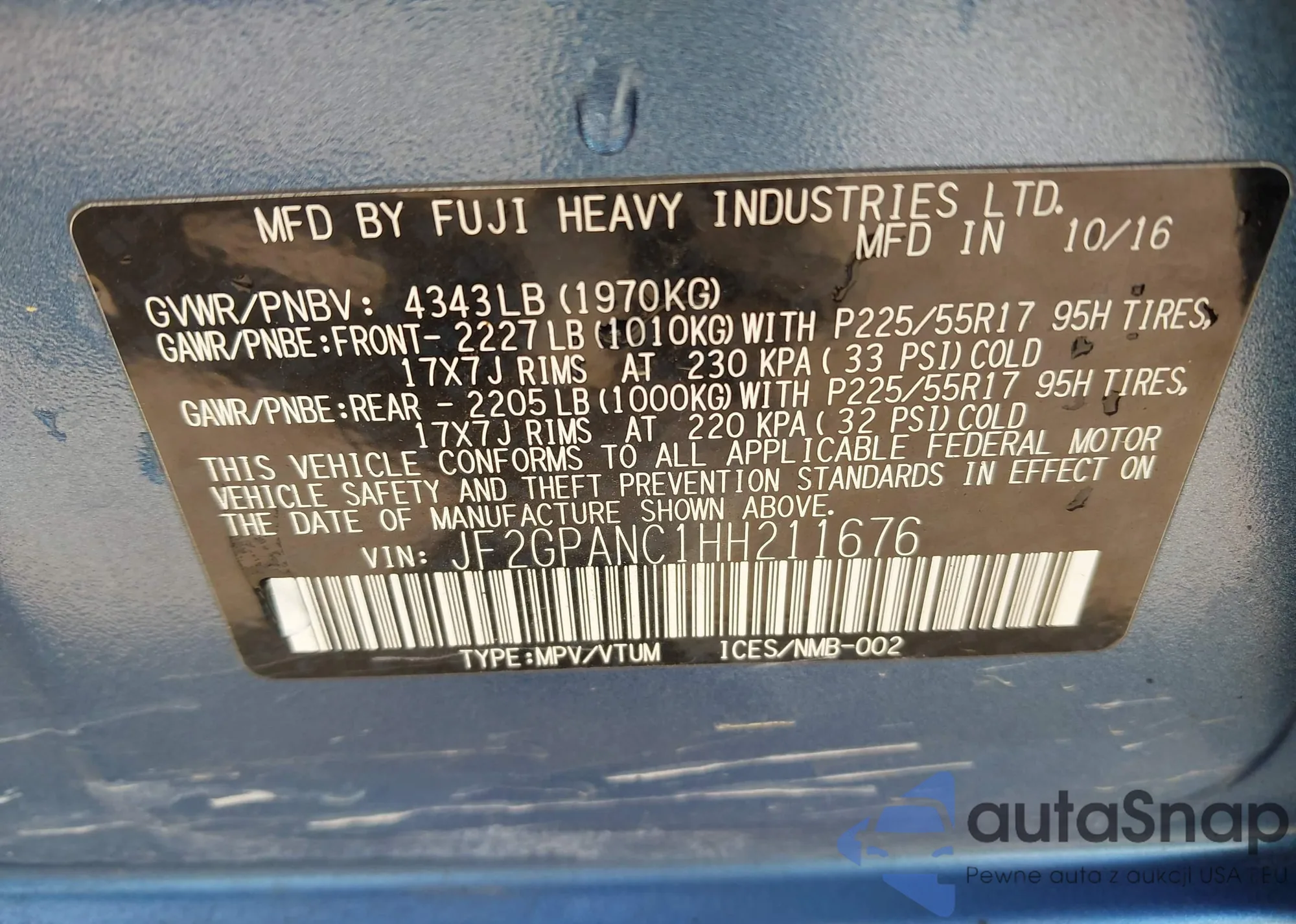 VIN: JF2GPANC1HH211676