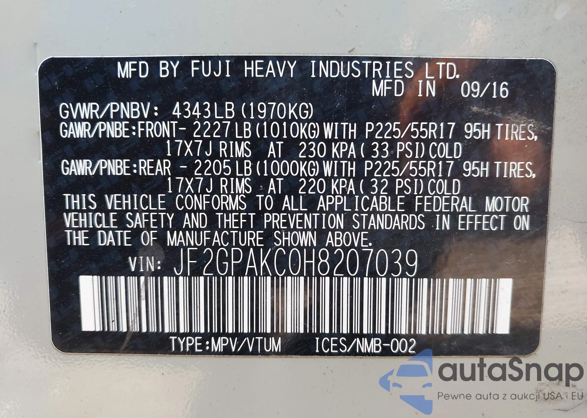 VIN: JF2GPAKC0H8207039