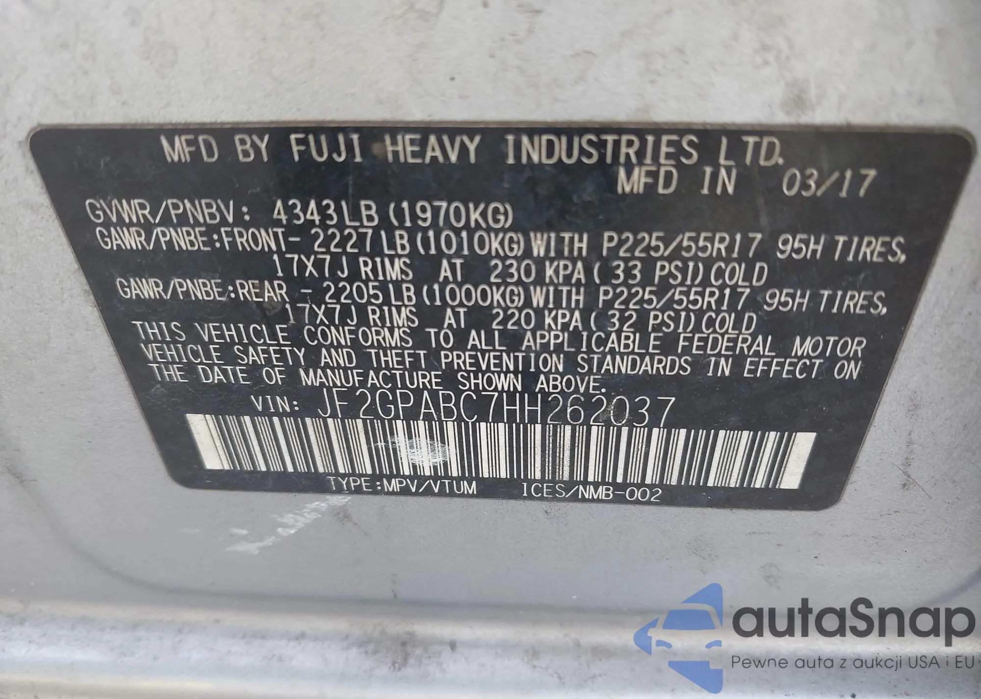 VIN: JF2GPABC7HH262037