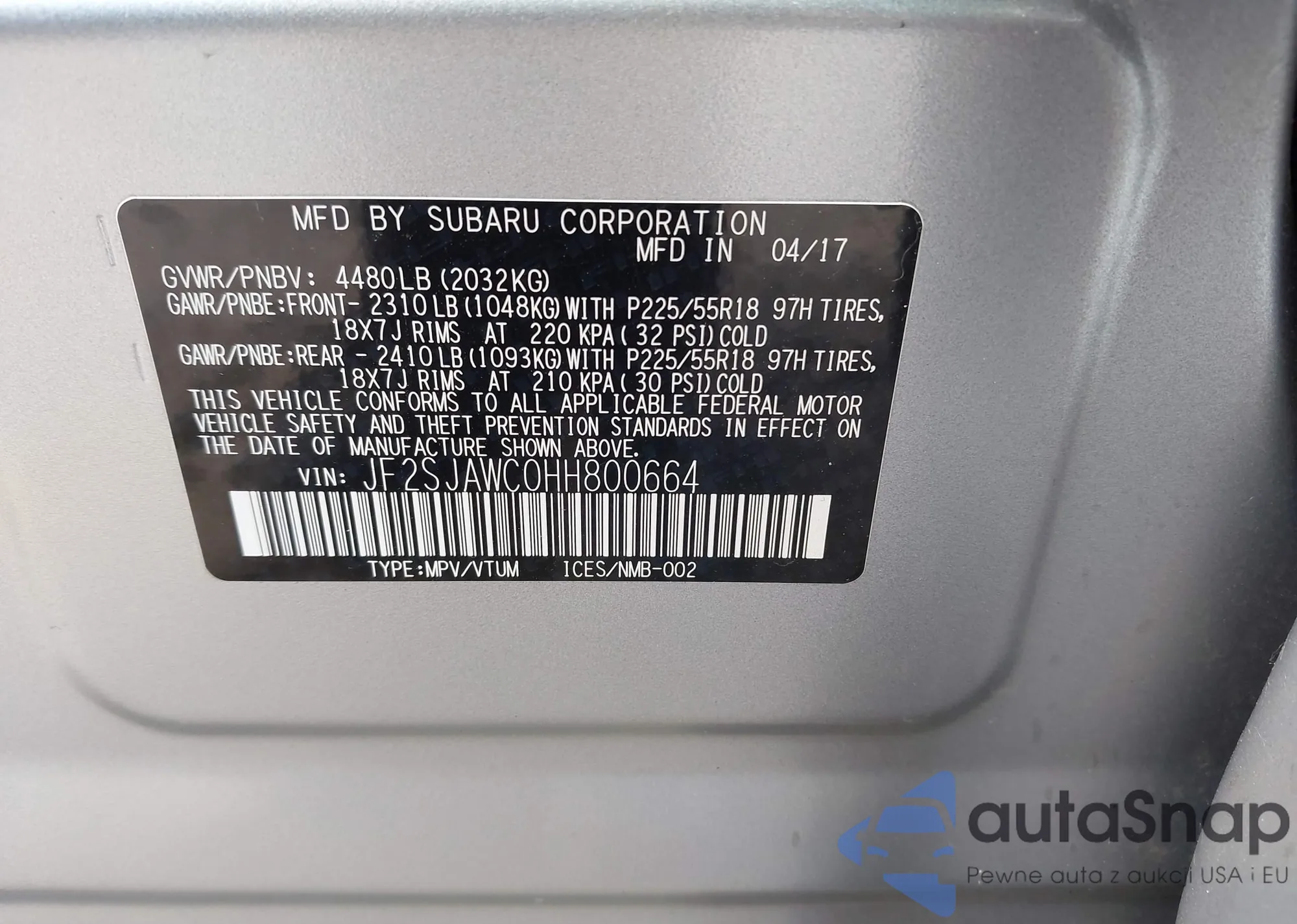 VIN: JF2SJAWC0HH800664