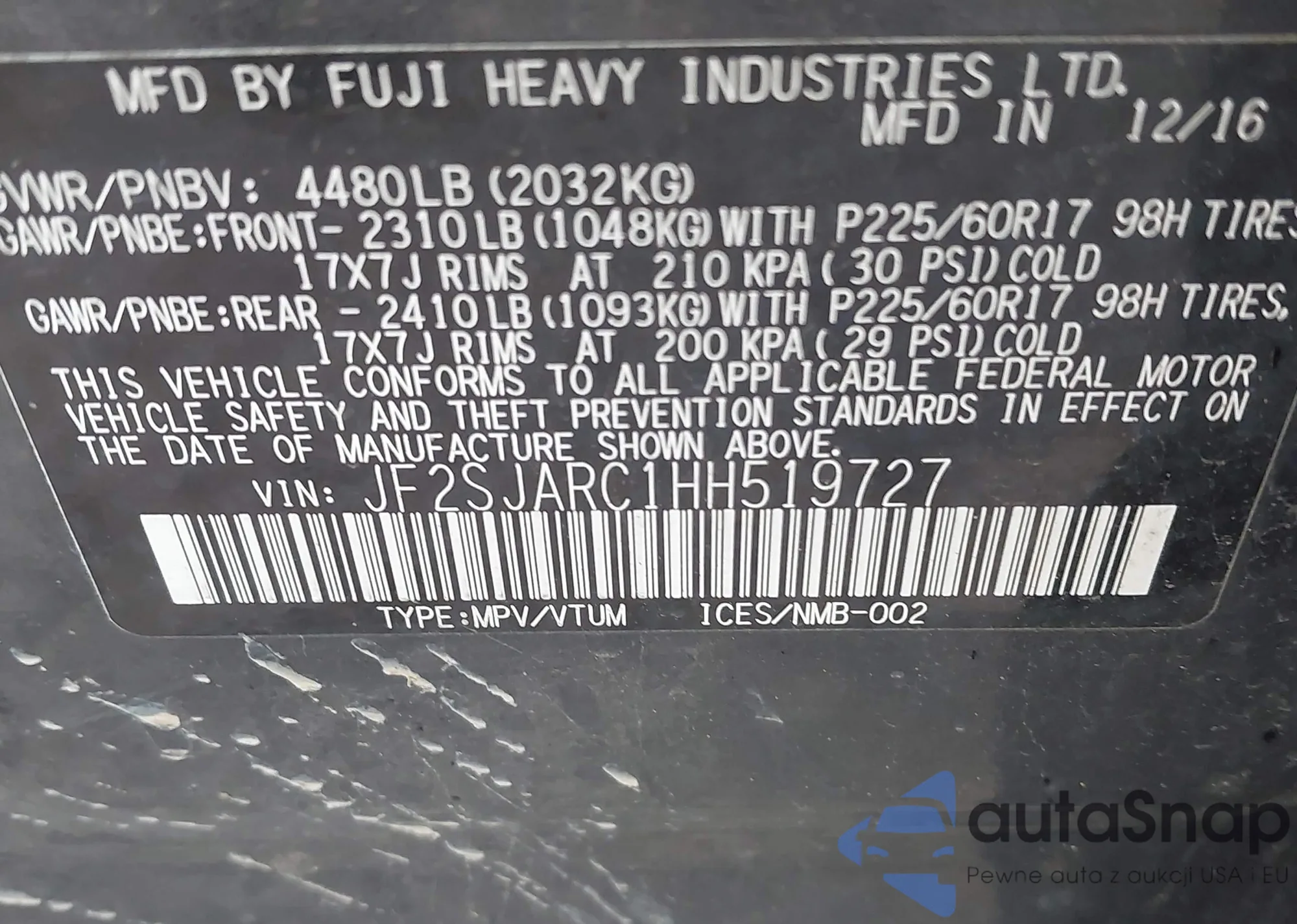 VIN: JF2SJARC1HH519727