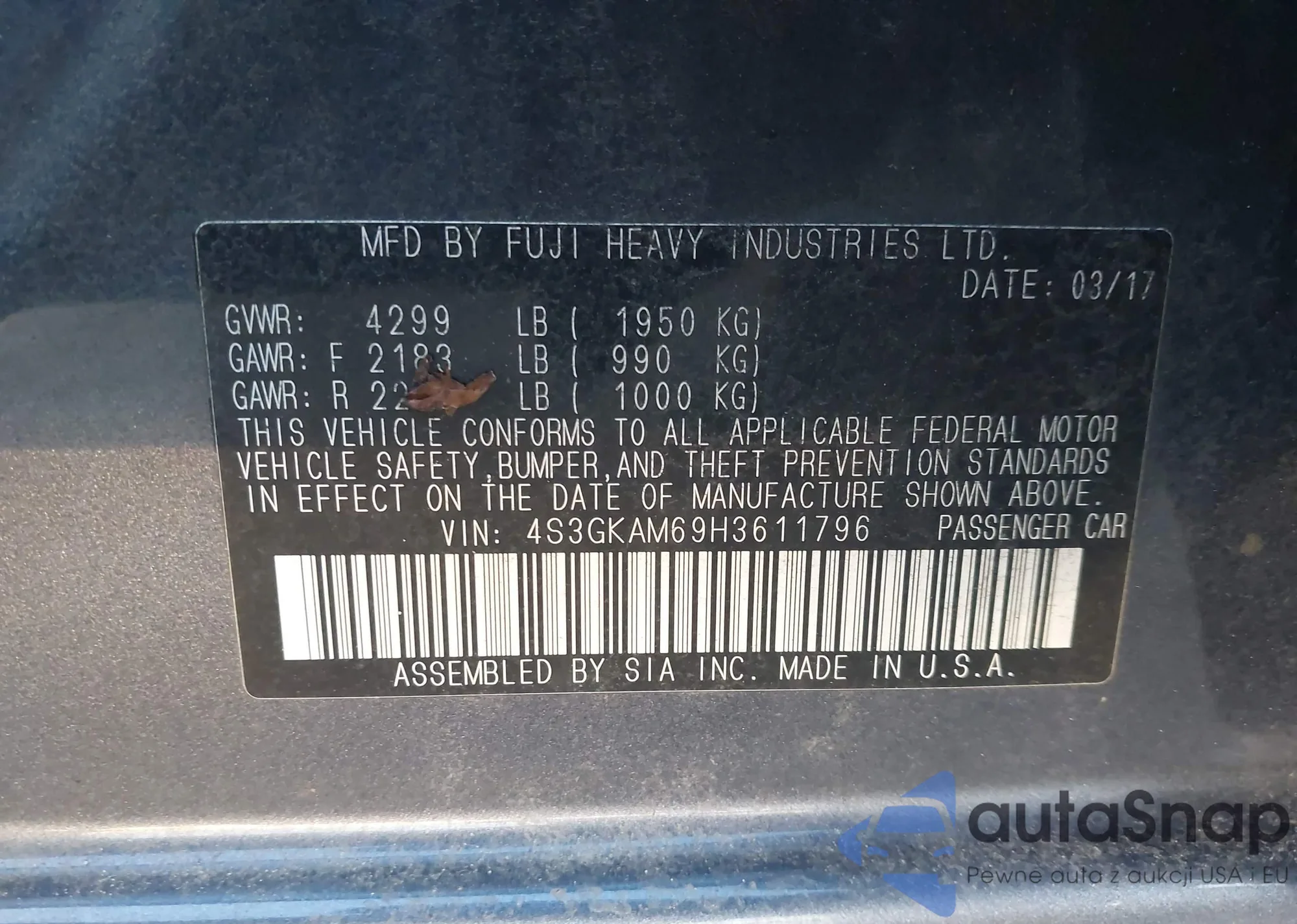 The car Subaru Impreza 2017 (VIN 4S3GKAM69H3611796) has not been auctioned before. The documents are clean, and the mileage matches or is below the market average. Sold by an insurance company – we recommend purchase. Delivery to the port will take approx. 6–8 weeks.