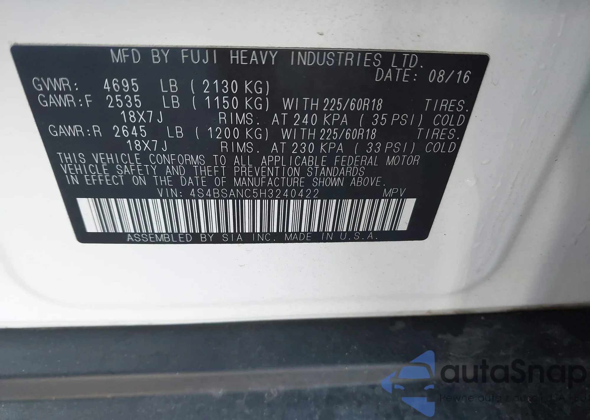 VIN: 4S4BSANT5H3240422
