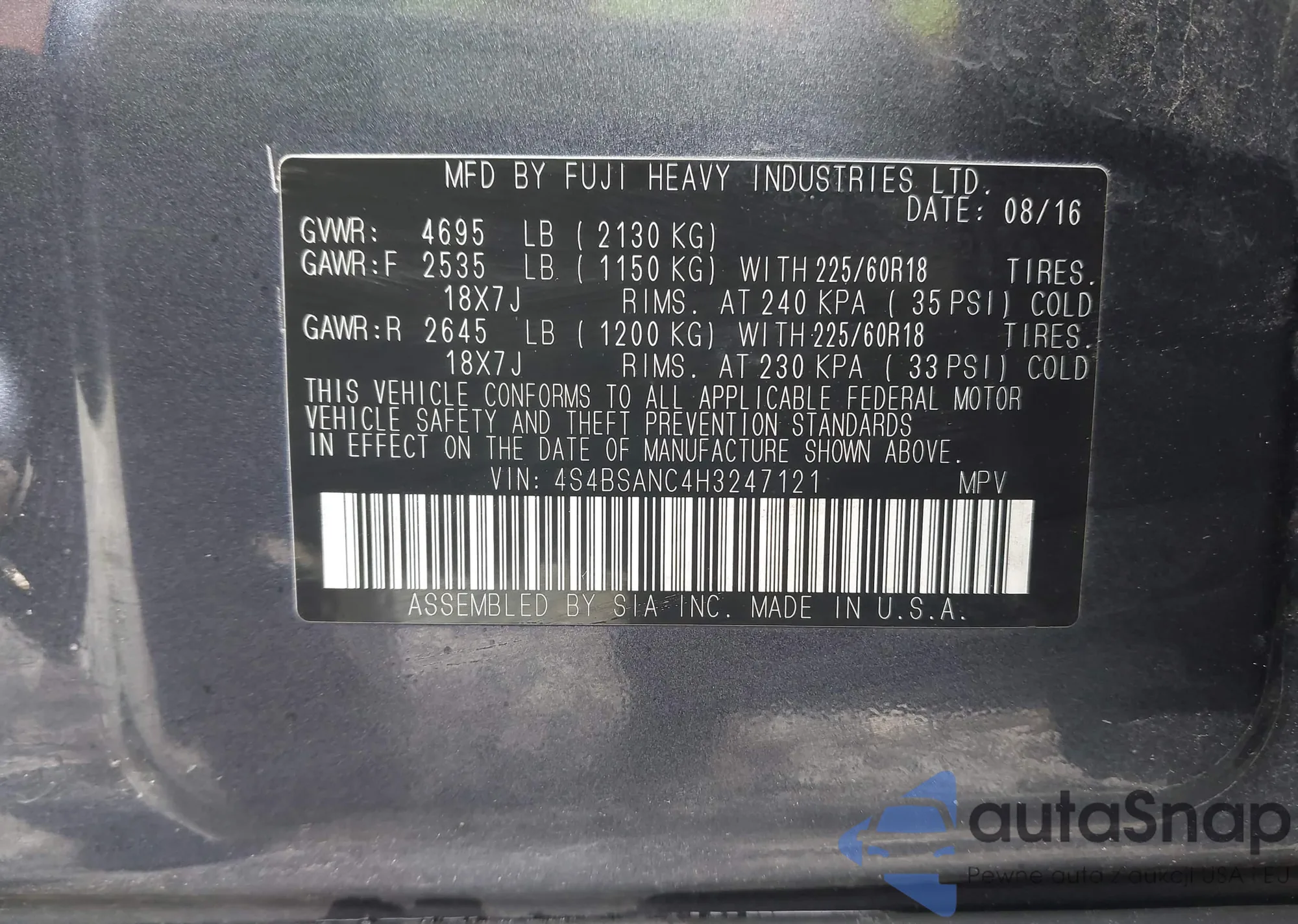 VIN: 4S4BSANC4H3247121