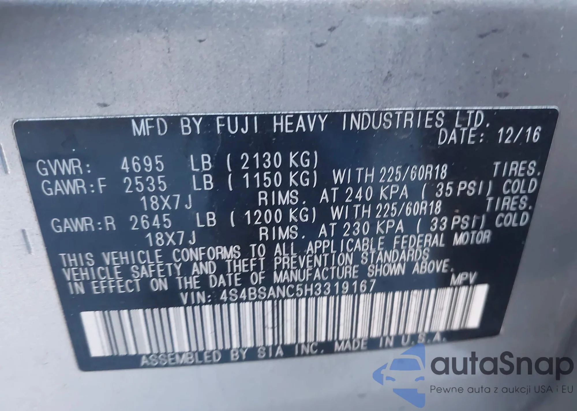 VIN: 4S4BSANC5H3319167