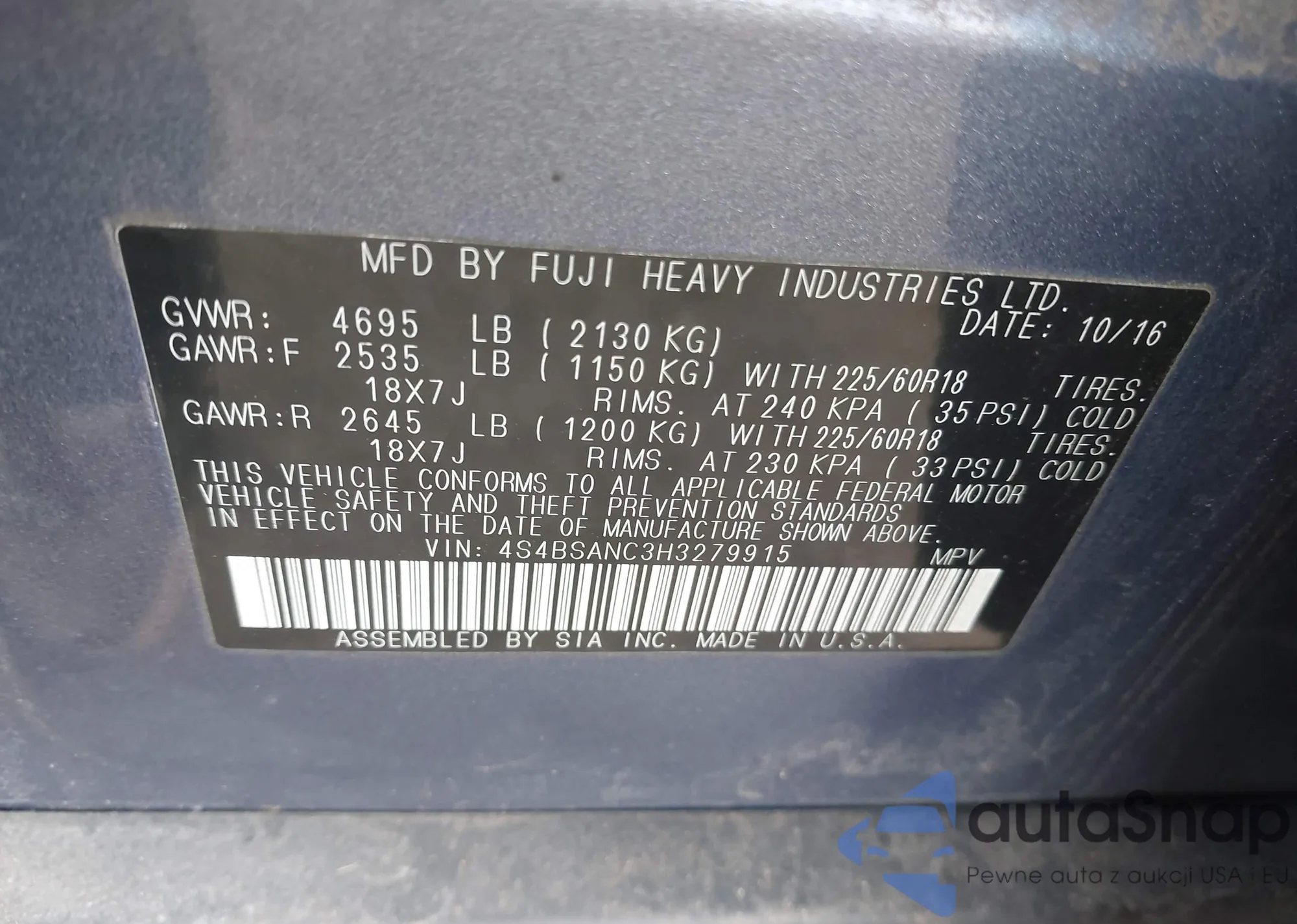The car Subaru Outback 2017 (VIN 4S4BSANC3H3279915) is sold by an unverified seller. We recommend checking the Carfax report and confirming registration possibilities before purchase.