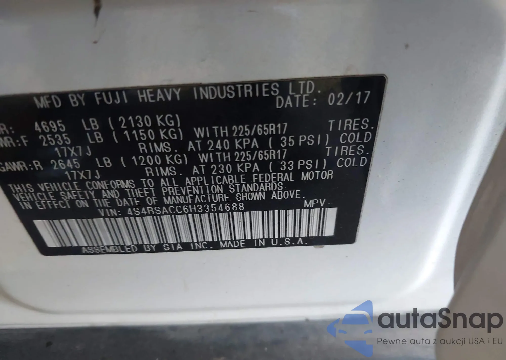 VIN: 4S4BSACC6H3354688