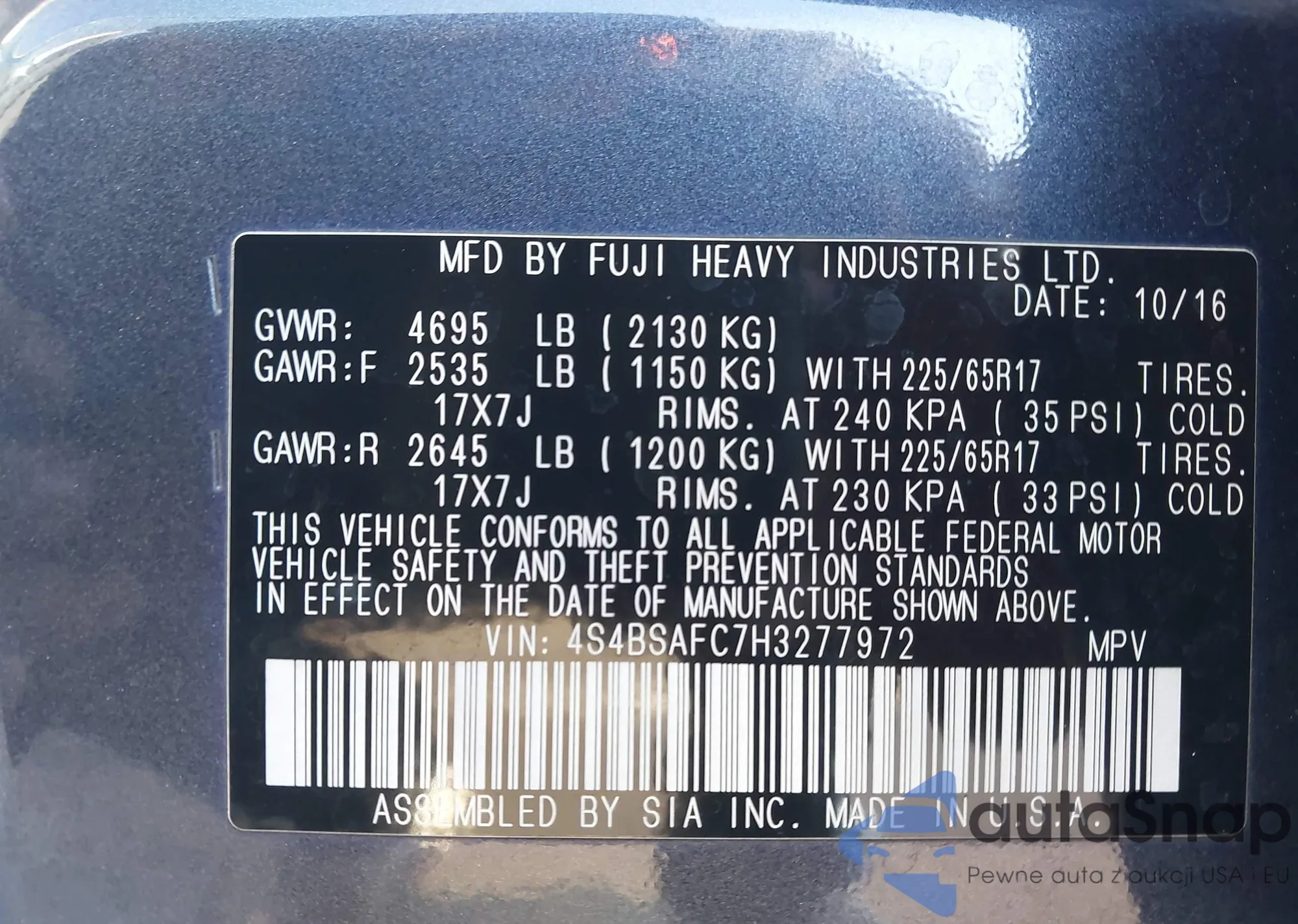 • VIN: 4S4BSAFC7H3277972