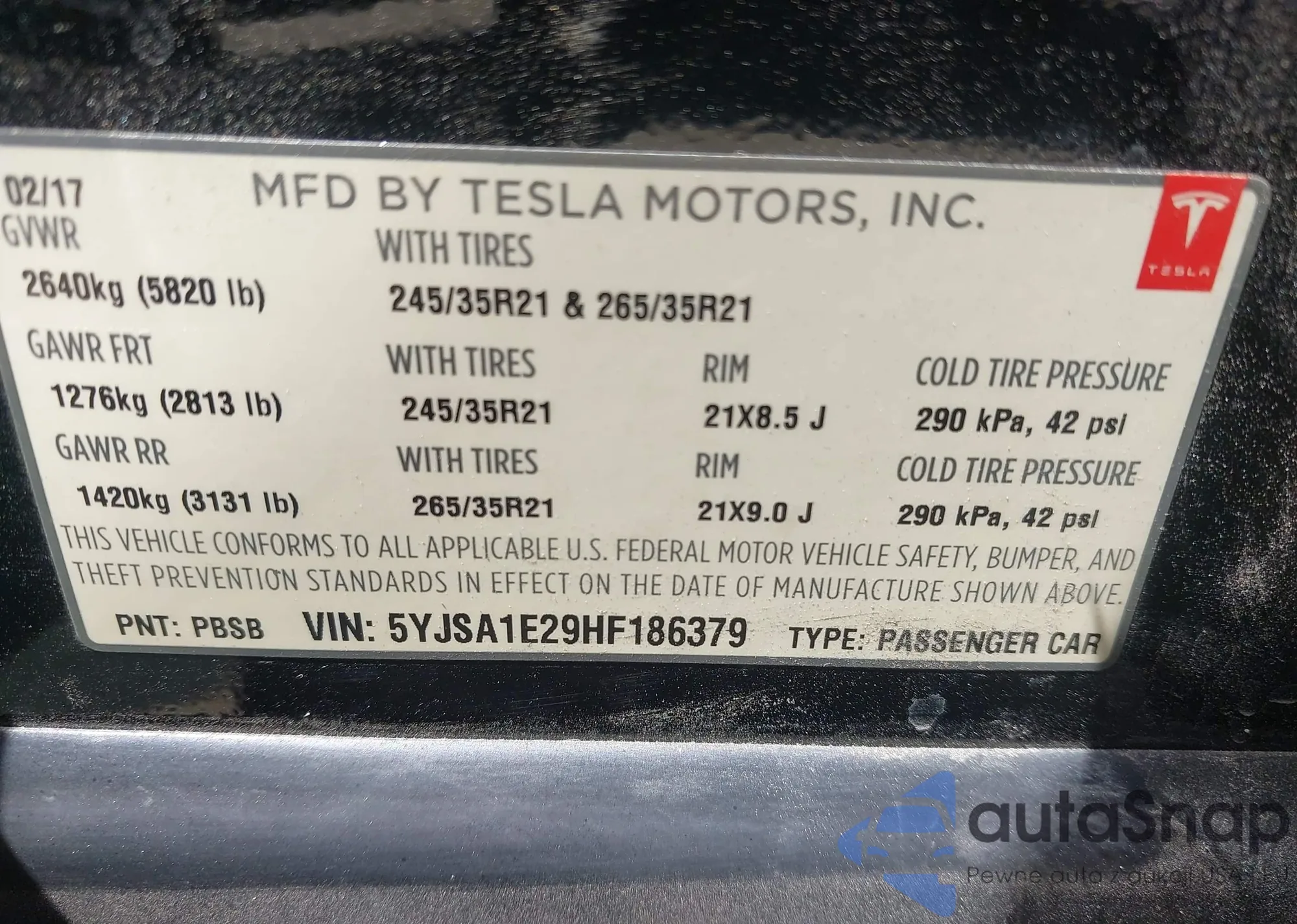 VIN: 5YJSA1E29HF186379