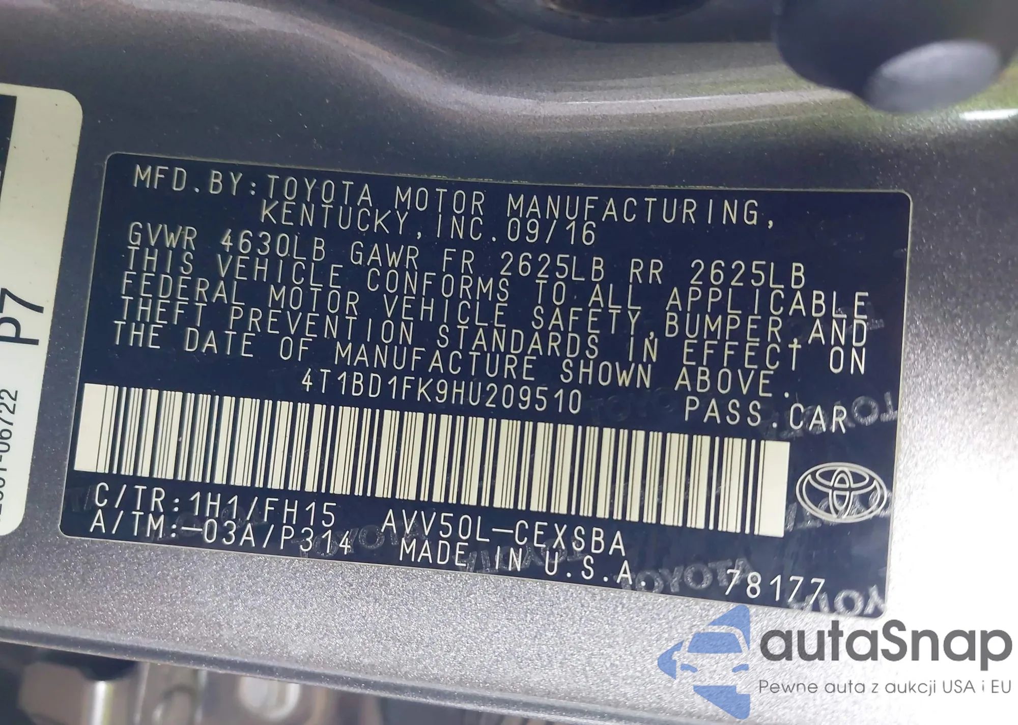 • VIN: 4T1BD1FK9HU209510