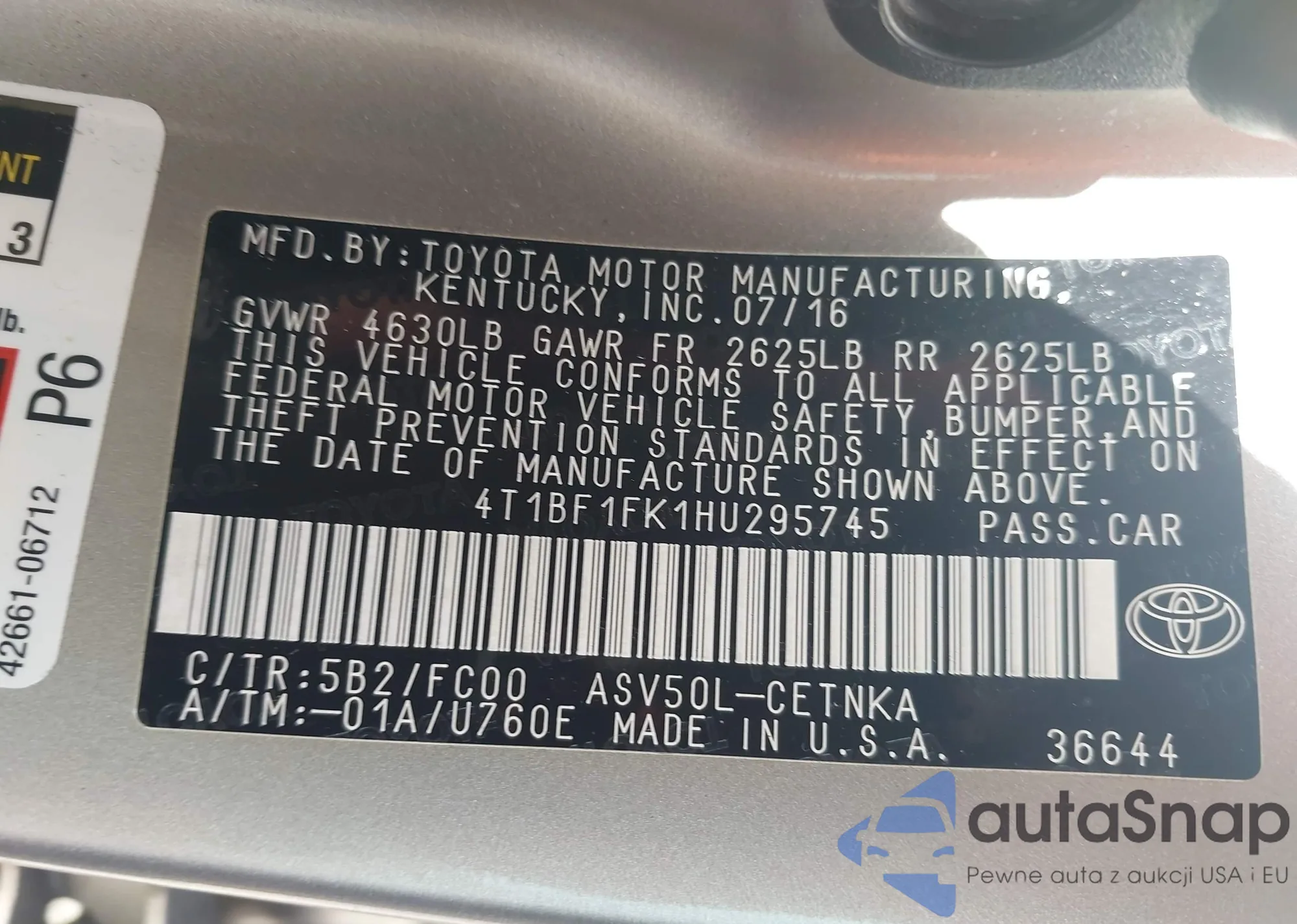 VIN: 4T1BF1FK1HU295745