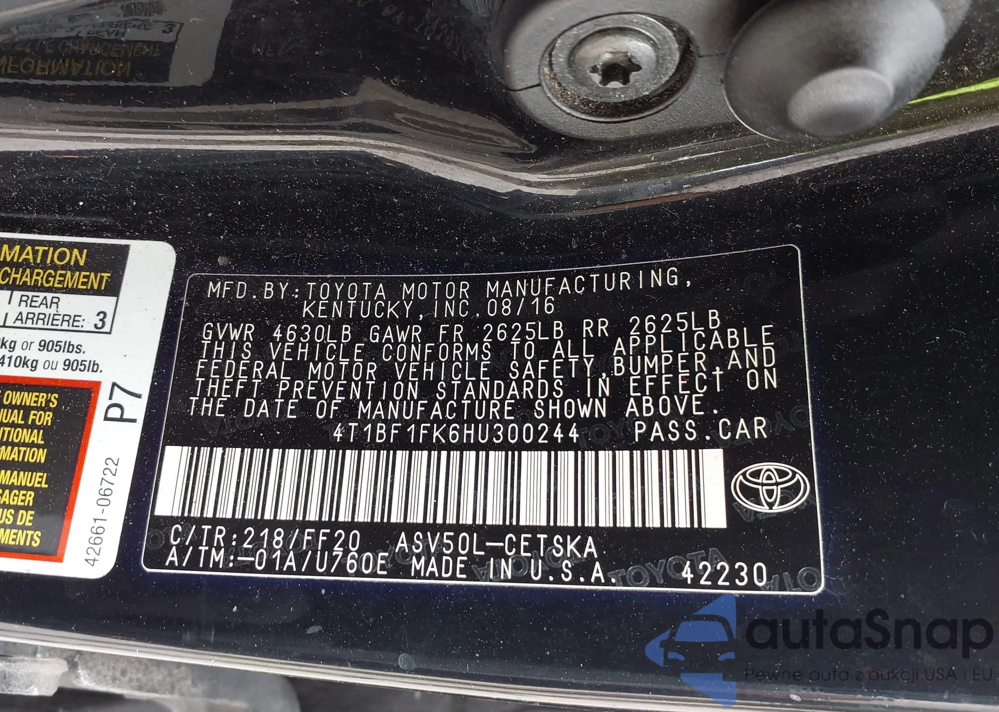 VIN: 4T1BF1FK6HU300244