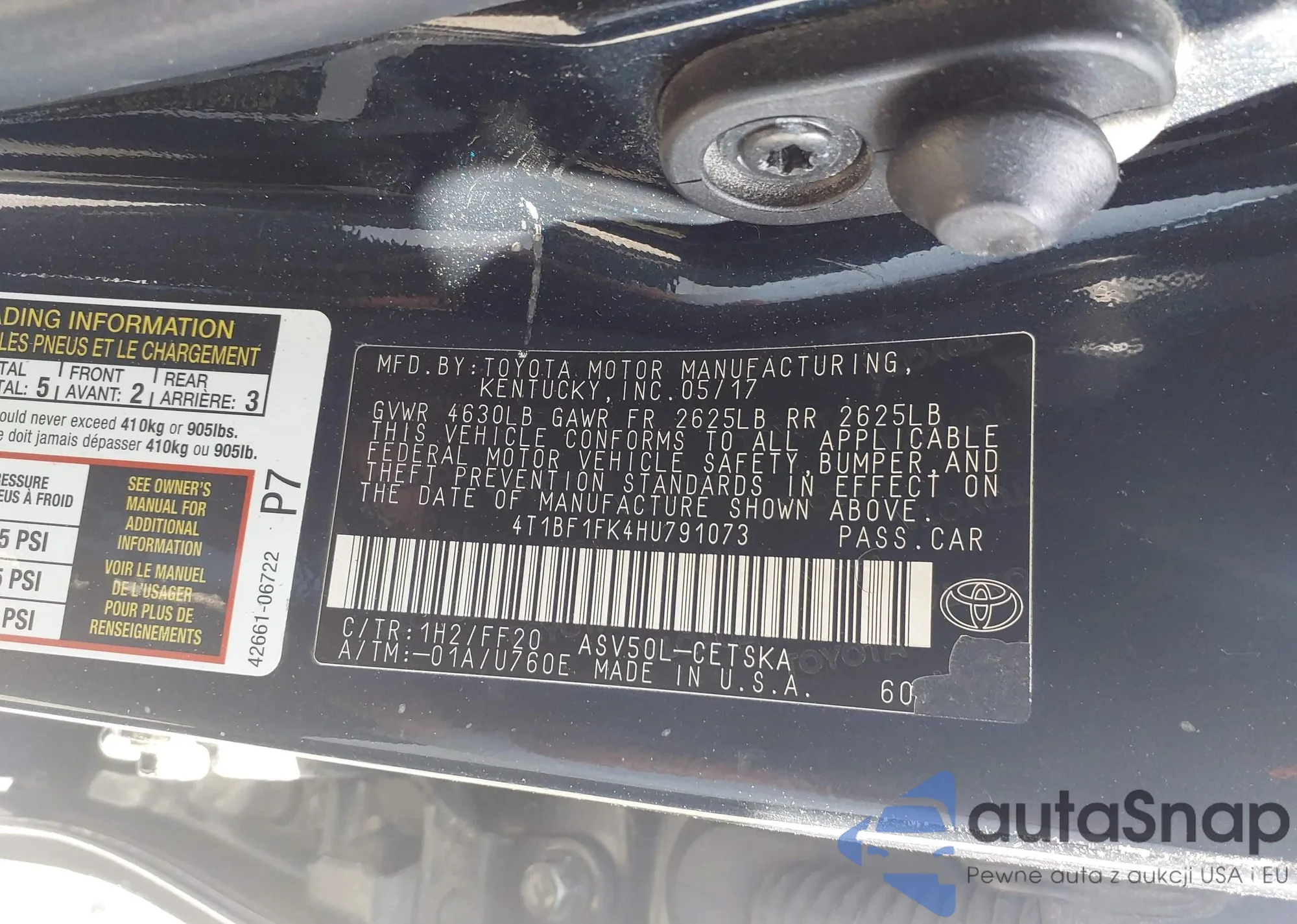 VIN: 4T1BF1FK4HU791073