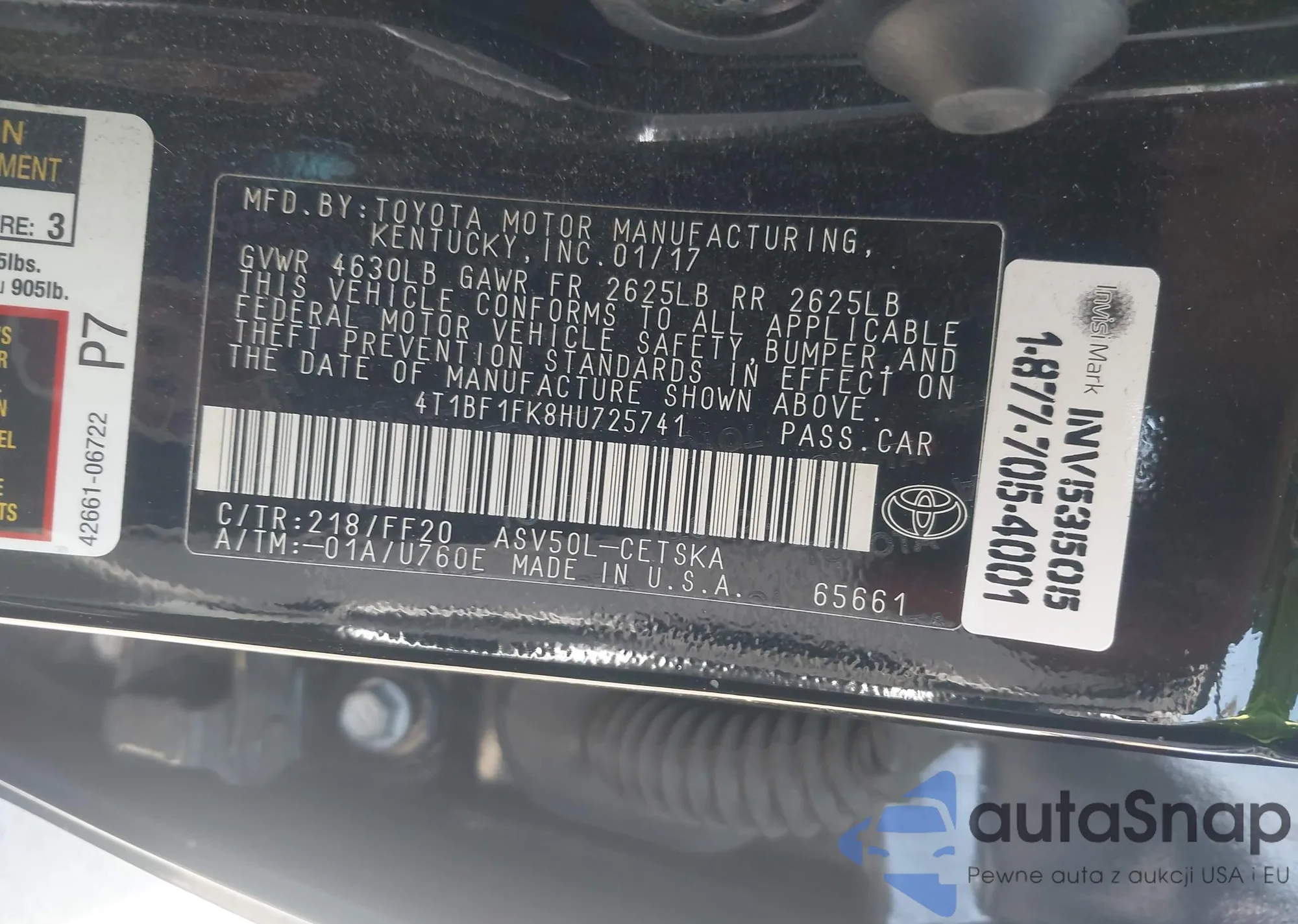 • VIN: 4T1BF1FK8HU725741
