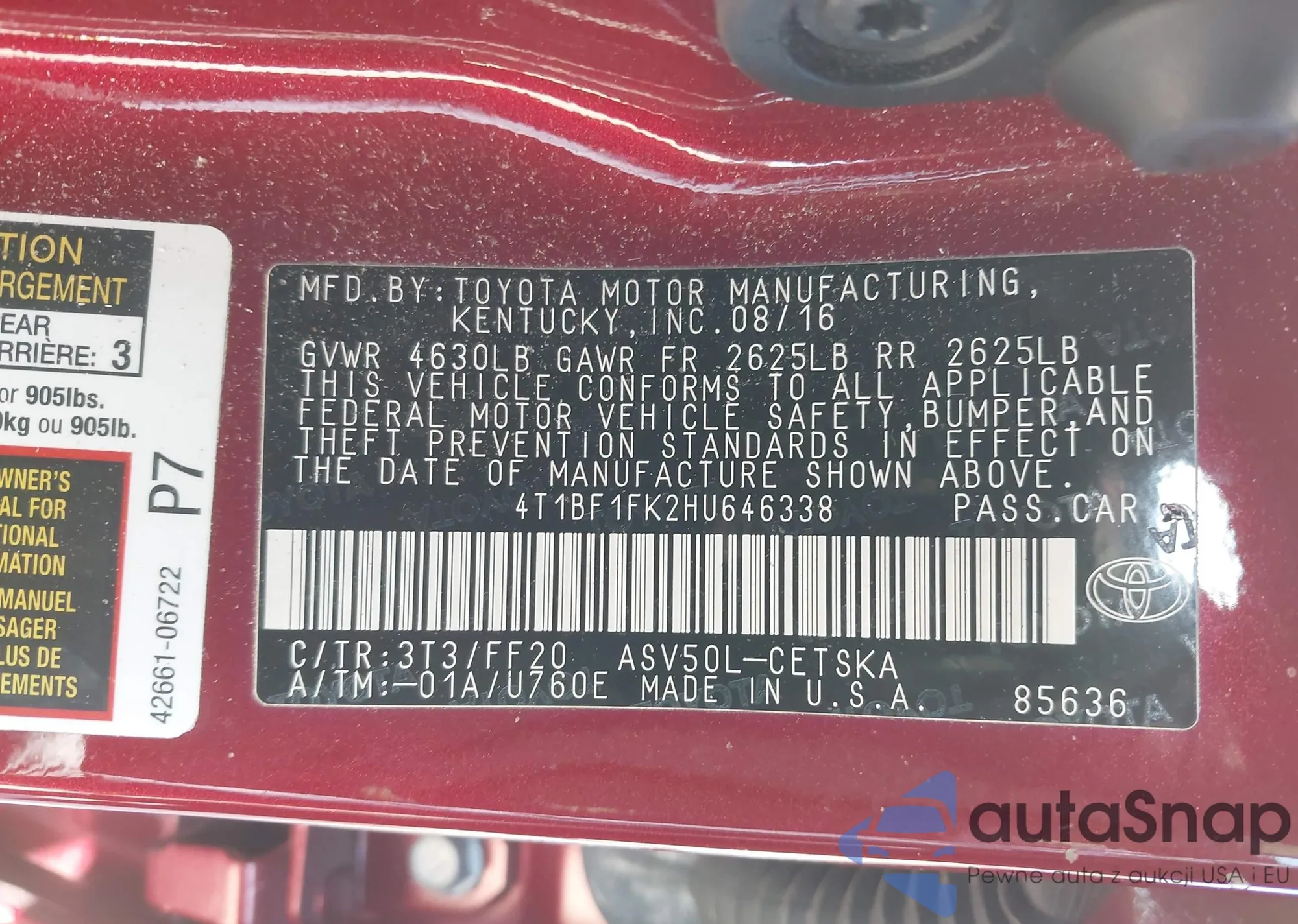 VIN: 4T1BF1FK2HU646338