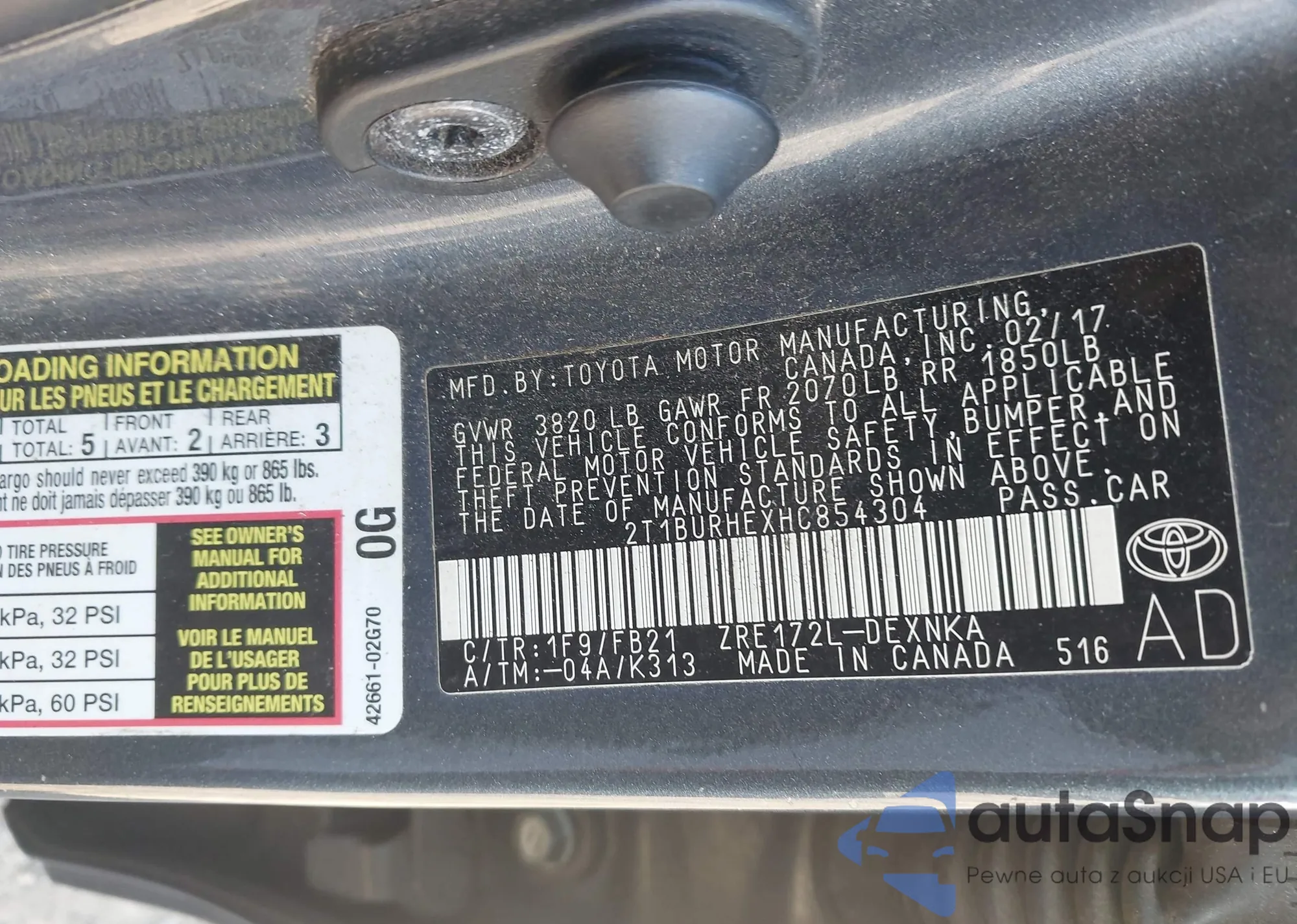 VIN: 2T1BURHEXHC854304