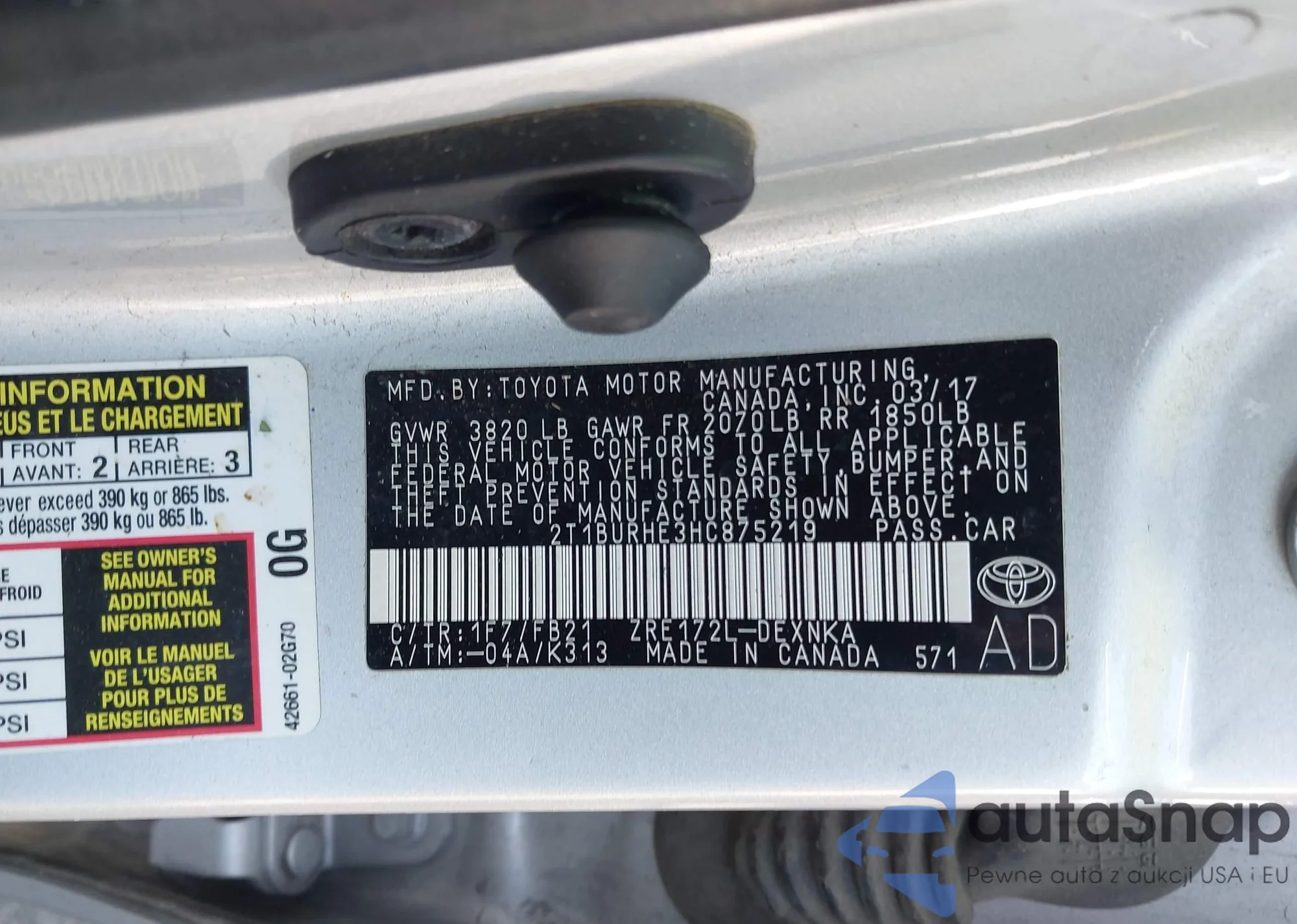 The car Toyota Corolla 2017 (VIN 2T1BURHE3HC875219) has not been auctioned before. The documents are clean, and the mileage matches or is below the market average. Sold by an insurance company – we recommend purchase. Delivery to the port will take approx. 6–8 weeks.