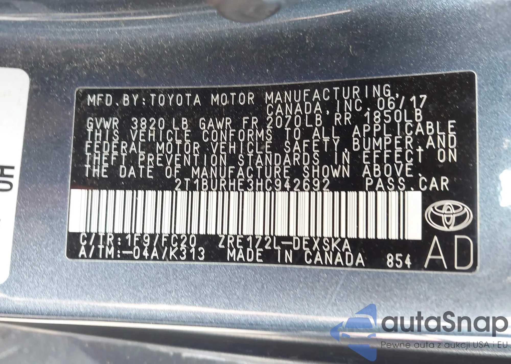 VIN: 2T1BURHE3HC942692