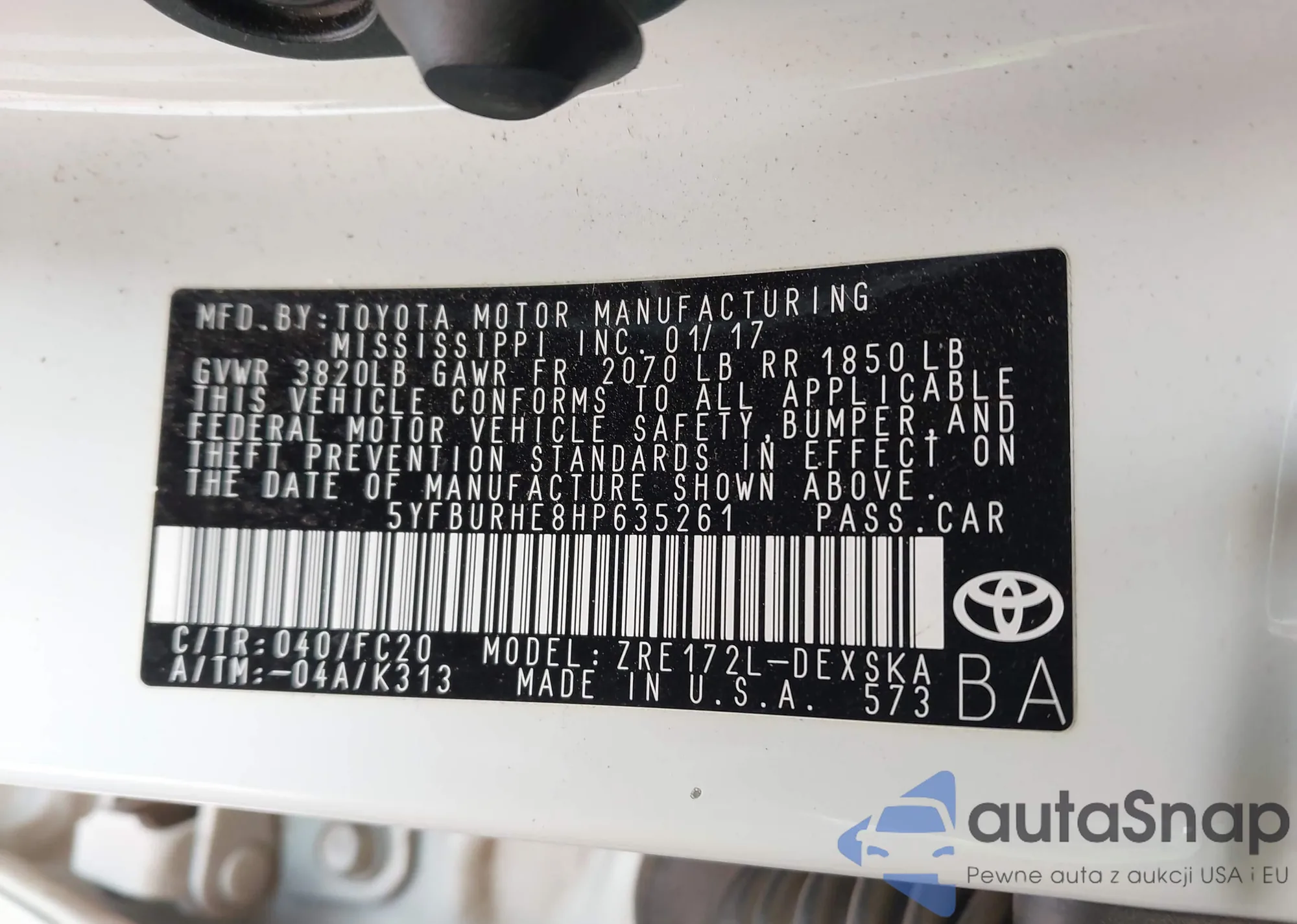 The car Toyota Corolla 2017 (VIN 5YFBURHE8HP635261) has already been auctioned 1 times and/or is sold by an unverified seller. We recommend checking the Carfax report and confirming registration possibilities before purchase.