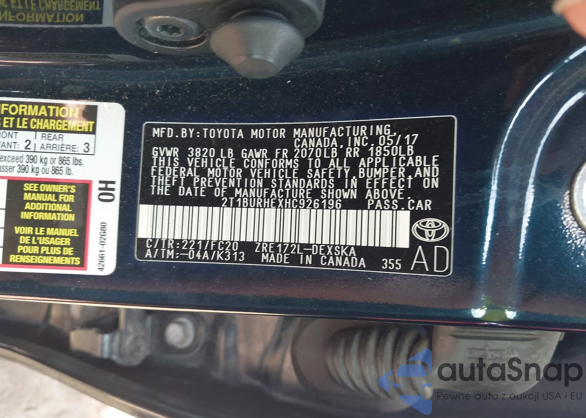 VIN: 2T1BURHEXHC926196